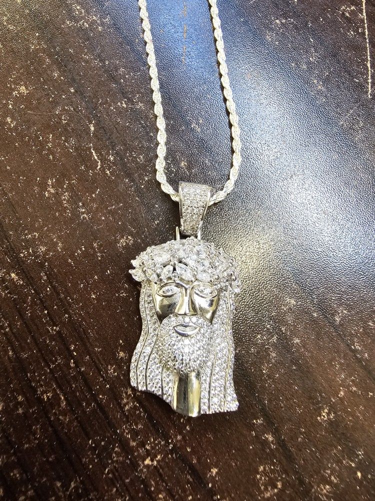 Sterling Silver Chain And Jesus With Zirconium Stones