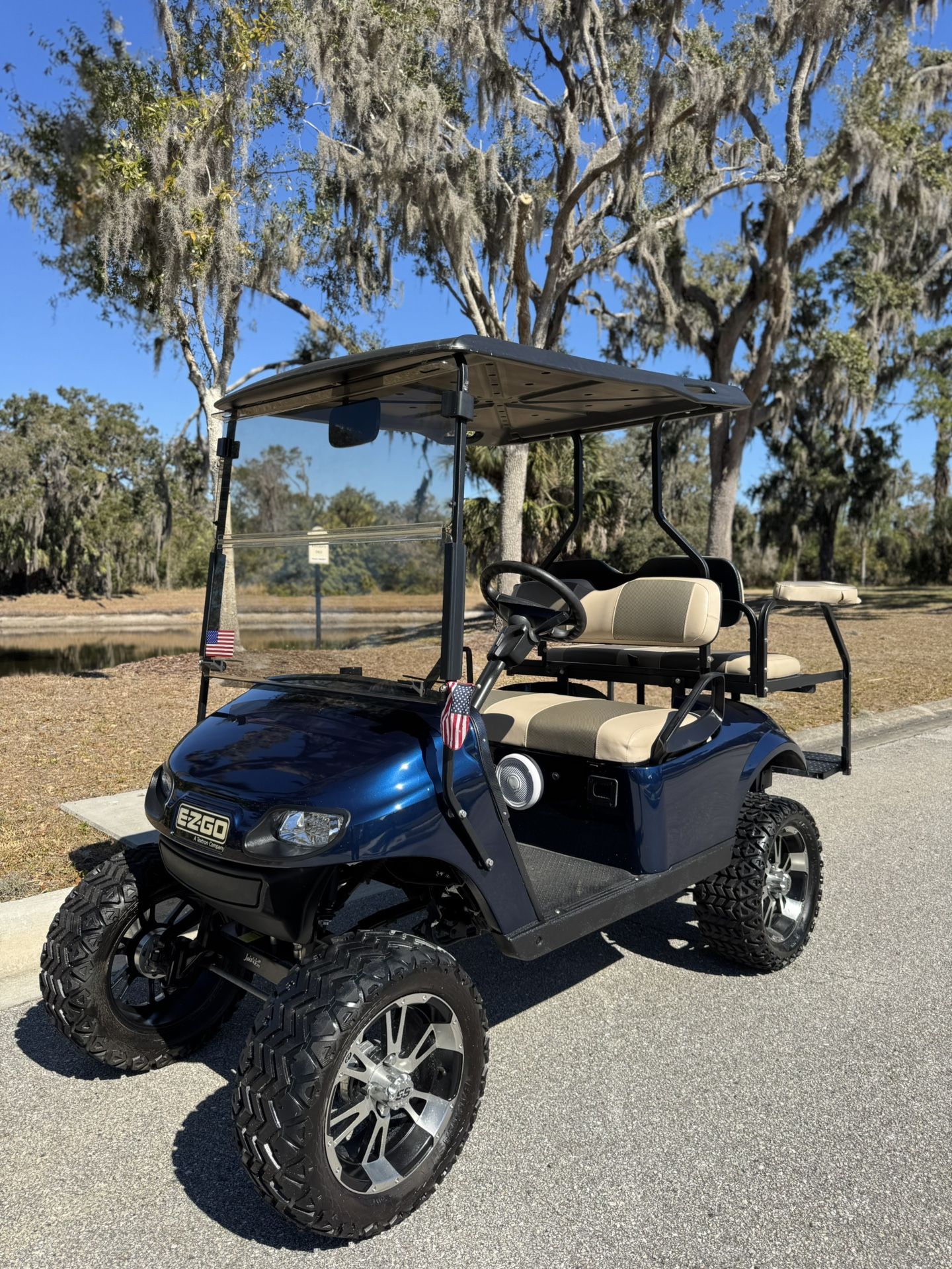 Beautiful Lifted 2015 EZGO TXT Golf Cart in excellent Condition, Does around 20MPH! -Strong Trojan Batteries Hold Great Charge -Leather Seats in Like New Condition -Nice Roof Top, Smart Charger -Led Headlights, Turn Signals, Hazard Lights -Storage Compartments, Rearview Mirror -Nice Tires with Polished Aluminum Rims -Back Seats Turn Into a Utility Bed -Phone Holder, Cup Holders -Comfort Grip Steering Wheel Rides great, come take a look you won’t be disappointed, perfect golf cart to take around the neighborhood or ride to your favorite stores, bars and restaurants near you, plenty of room to bring along your family or friends. Delivery is Available $3200 Firm!