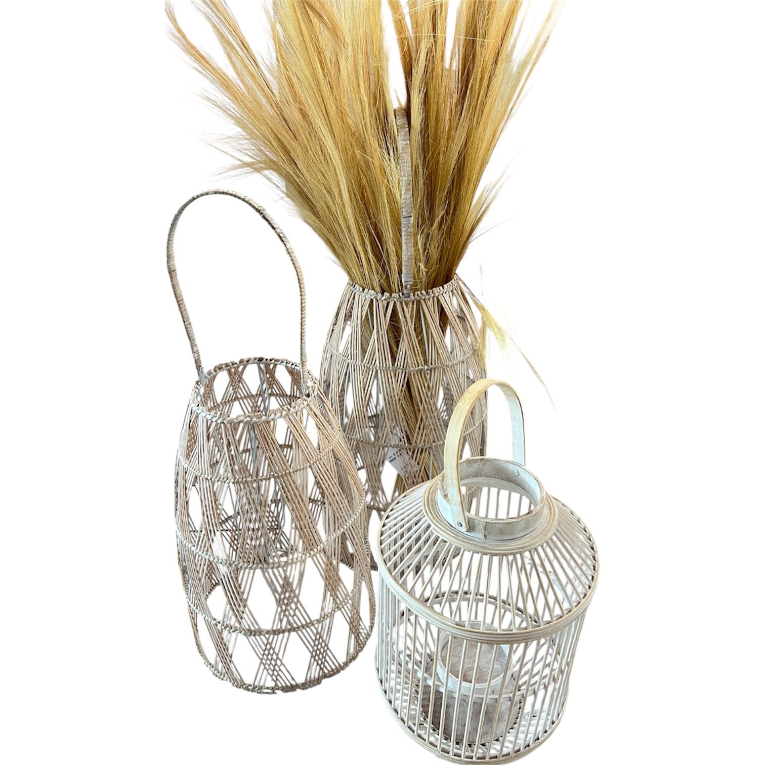 Set of 3 Decorative Woven Lanterns – Rustic/Boho Farmhouse Style.