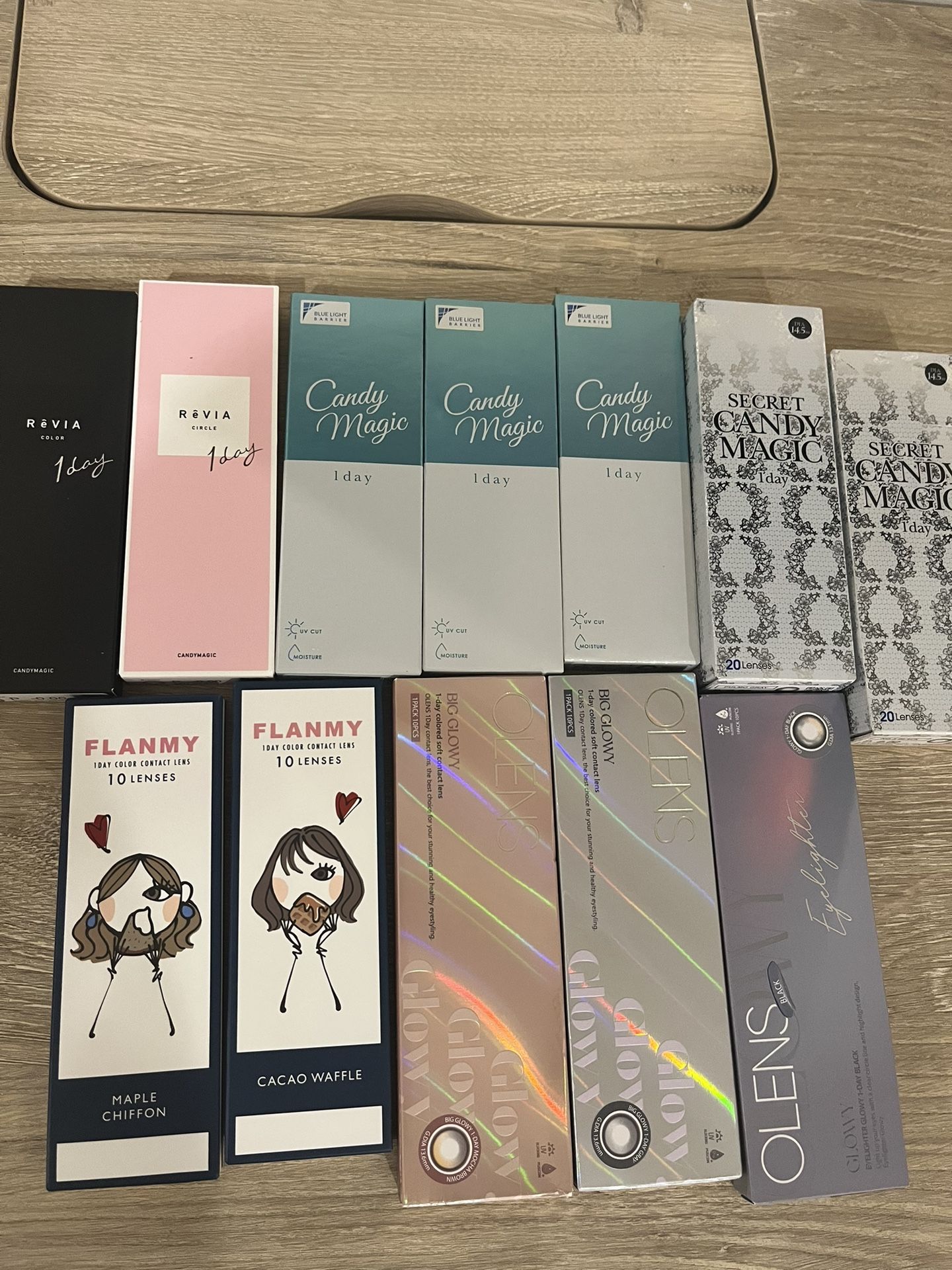 Brand new sealed Color contact lenses make your eyes pop! Asian brands: Olens , Revie , Flanmy, Candy Magic No prescription 15$ each box - available colors gray black and brown! - olens sold out