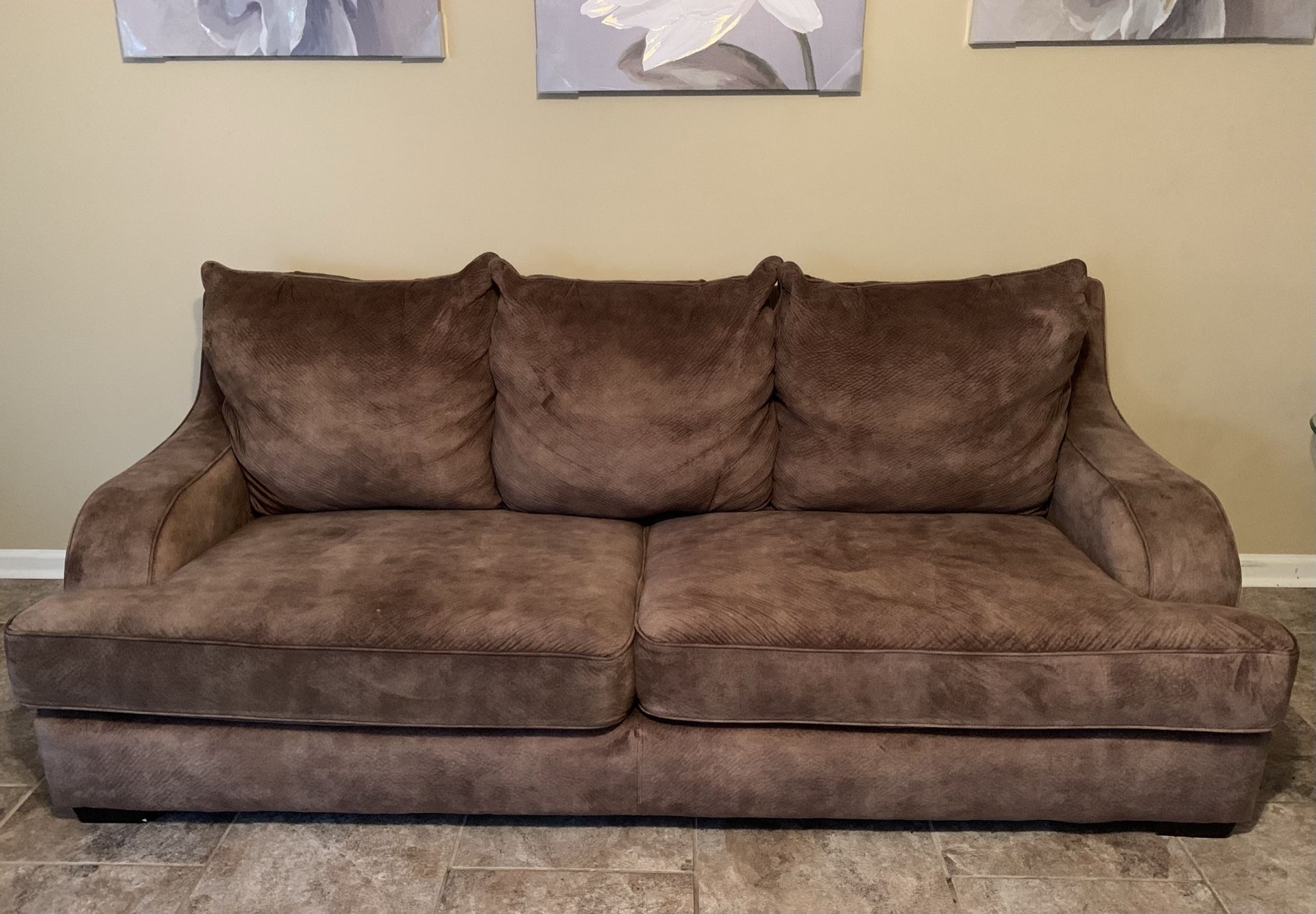Tengo un sofá y un sofá de dos plazas, es marrón, cómodo y suave. Sin lágrimas ni propinas. La marca Jackson, elaborados con la mejor madera y tela. Lo tuve durante 2 años. Quiero cambiar mi combinación de colores en mi sala de estar. Entonces, estoy tratando de venderlo. Si tuviera el espacio, lo mantendría. Precio original de $2,200 pidiendo $600 negociables. Hogar libre de humo/insectos/roedores/libre de Covid. Debe recoger