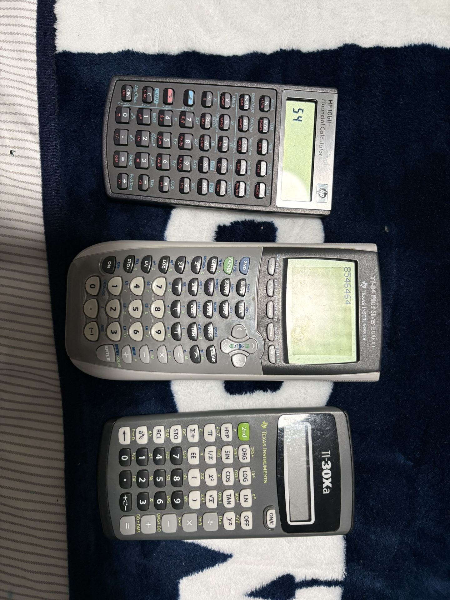 TI-84 $40 needs batteries HB10bii+ $15 Ti30xa $5 needs batteries