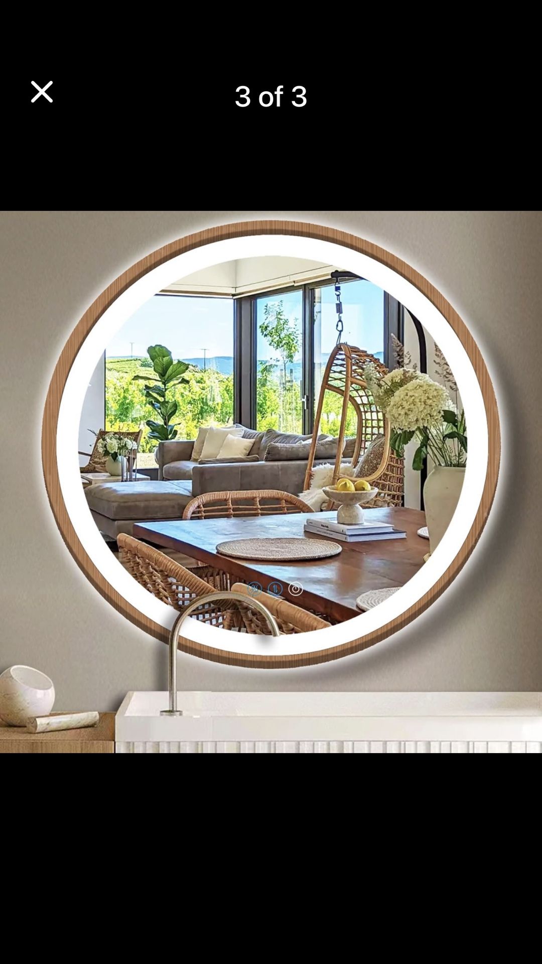 Wood Frame Round LED Bathroom Mirror With Lights 20 Inch, Lighted Vanity Wall Mirror, 3 Color Dimmable Anti-Fog Smart Circle Mirror