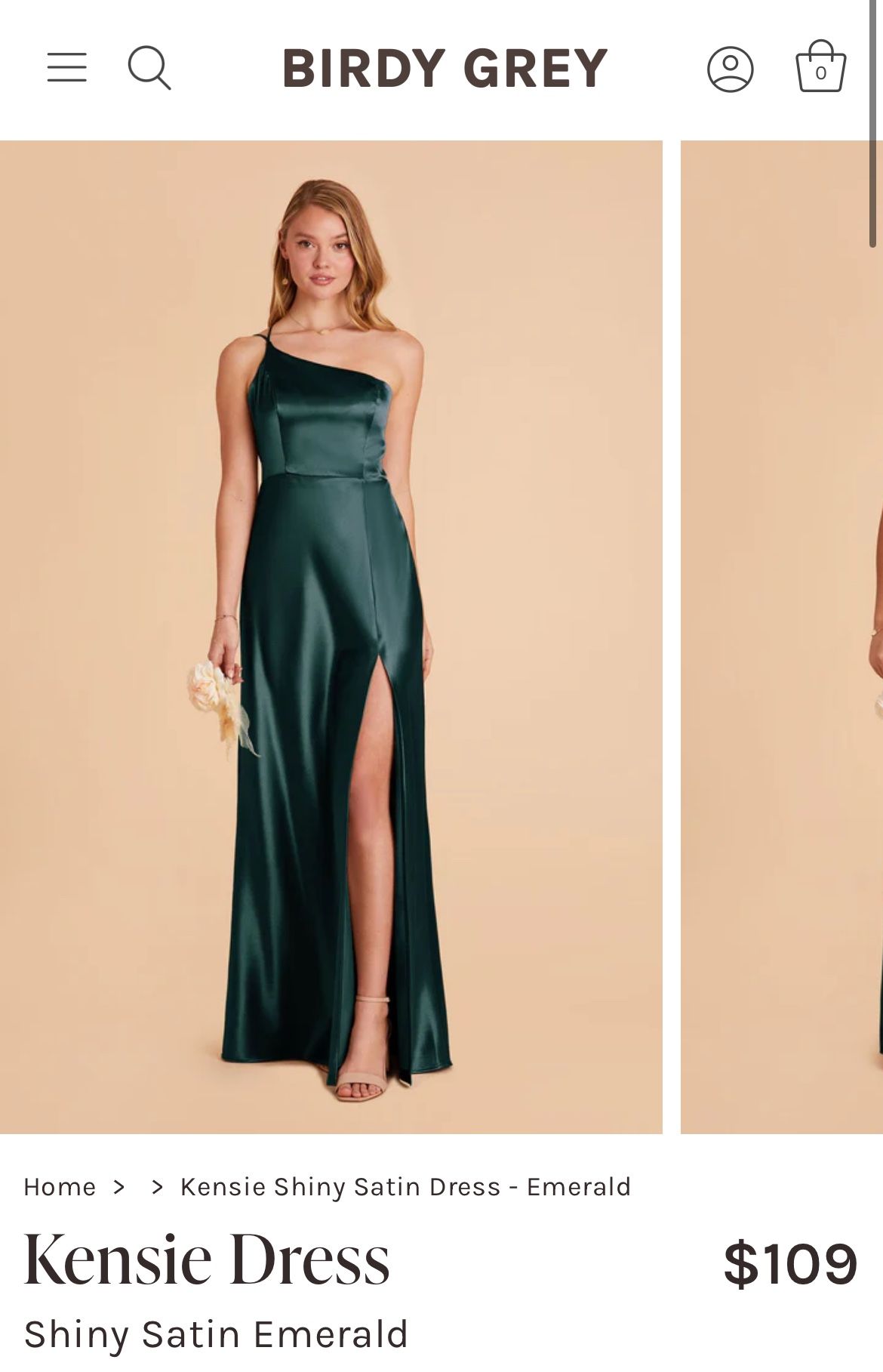 Size small - color Emerald. On the Birdy grey site it is kensie dress shiny satin emerald. I have a different style but same color in XL size on page as well