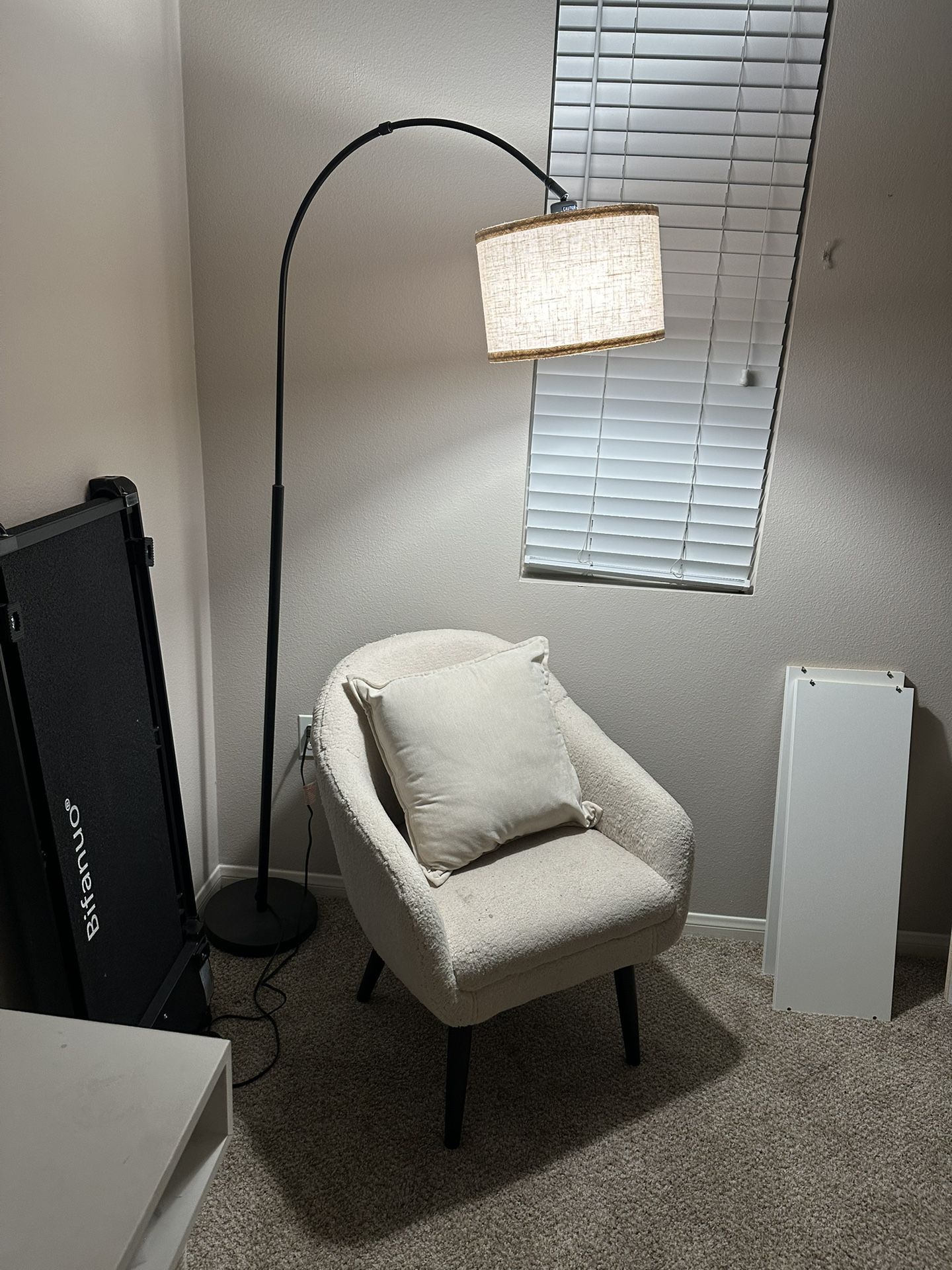 White boucle chair. In good condition. can also take pillow! $25 obo