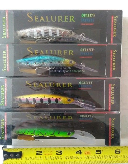 Brand new fishing lures Minnow Baits 4pack lot. Excellen quality and performance. Magnetic tungsten weight and balance performance system. Top quality lures. Brand new 4pack lot