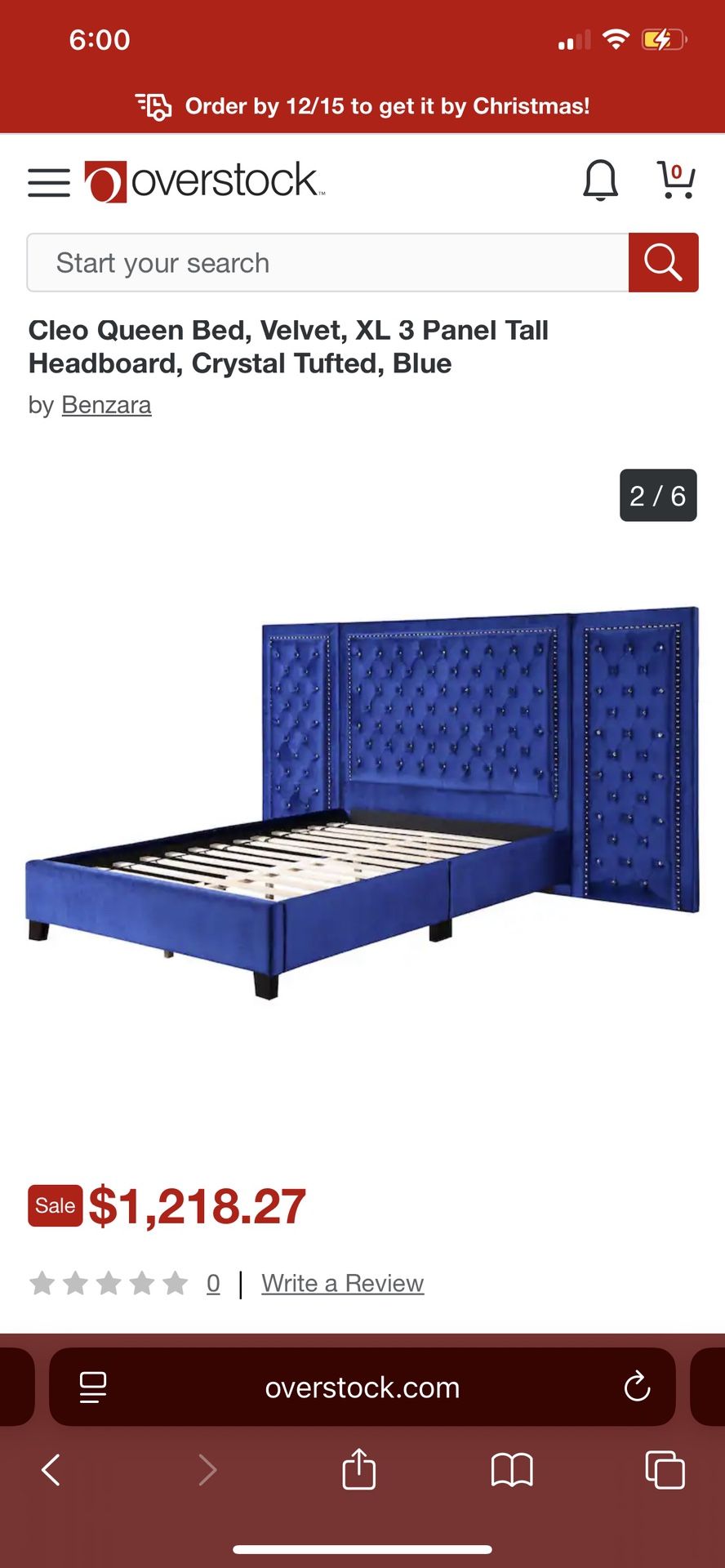 Cleo Queen Bed, Velvet, XL 3 Panel Tall Headboard, Crystal Tufted, Blue