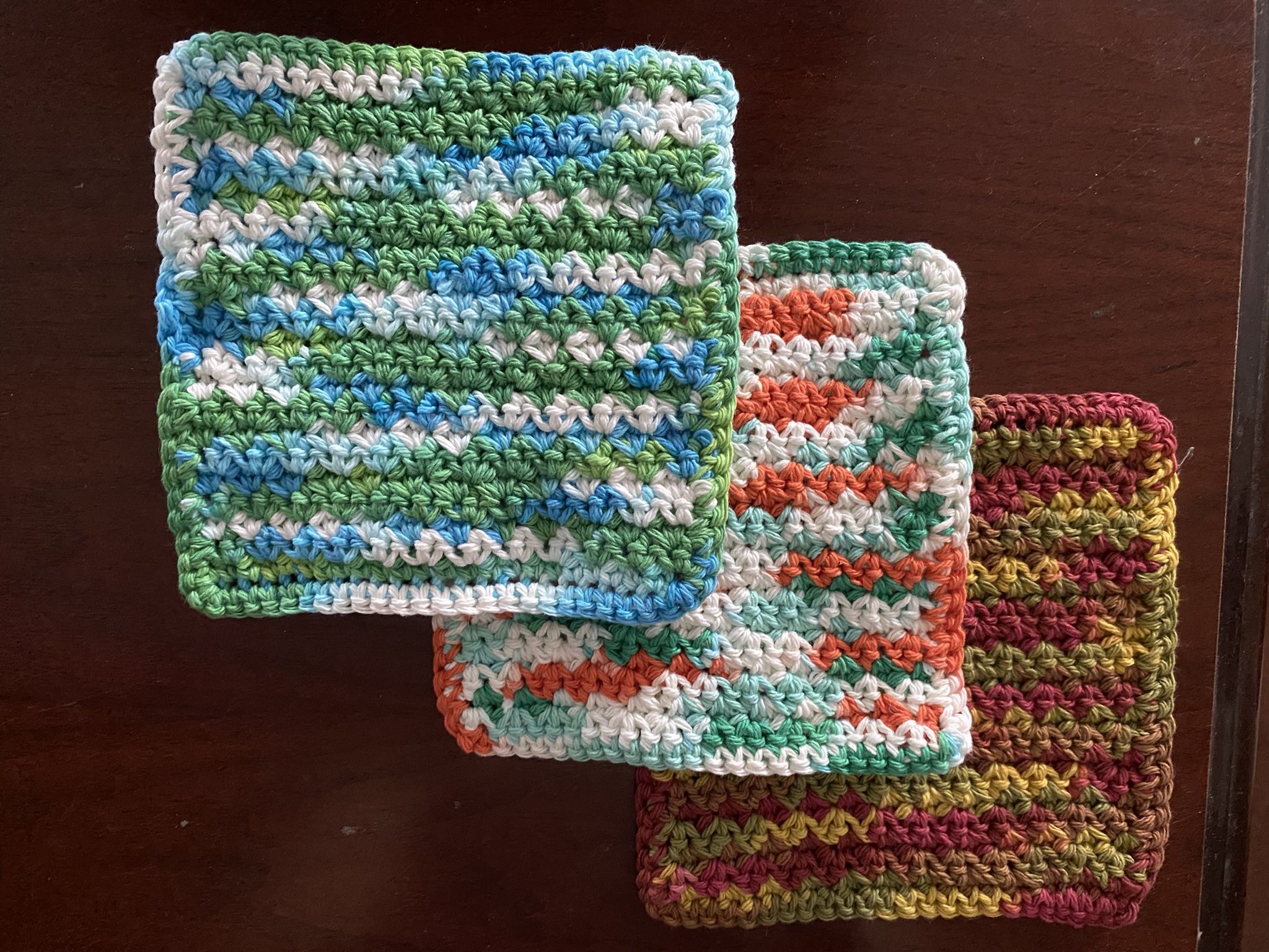 Handmade dishcloths that can be crocheted in a variety of patterns. Asking $5 each or 3 for $10.