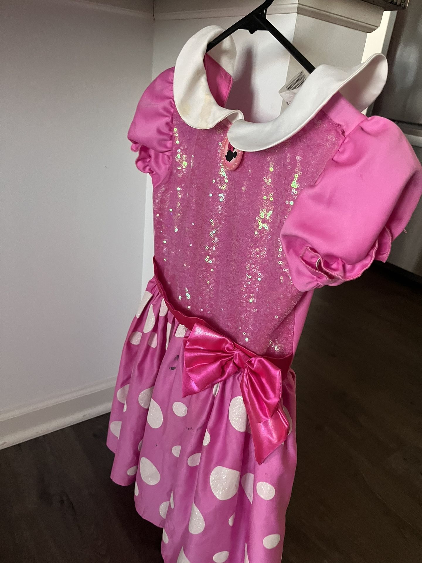 Size small and medium Miraculous lady bug with mask- small -$5 Mrs. Santa Claus-small (7/8)- $4 Minnie Mouse with pendant- medium-$5 Bat girl with cuffs - medium-$5 Minnie Mouse has a rip in back on seam, so could be sewn.
