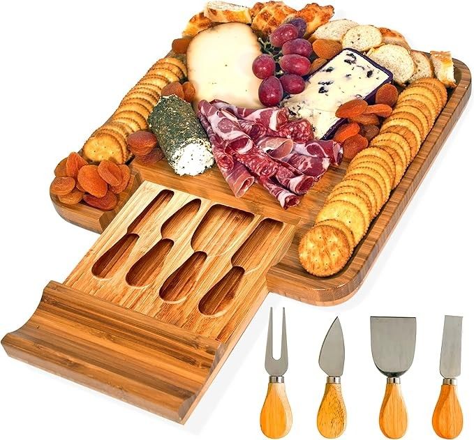 New Cheese Board & Charcuterie Set – Bamboo Serving Tray w/ Knives