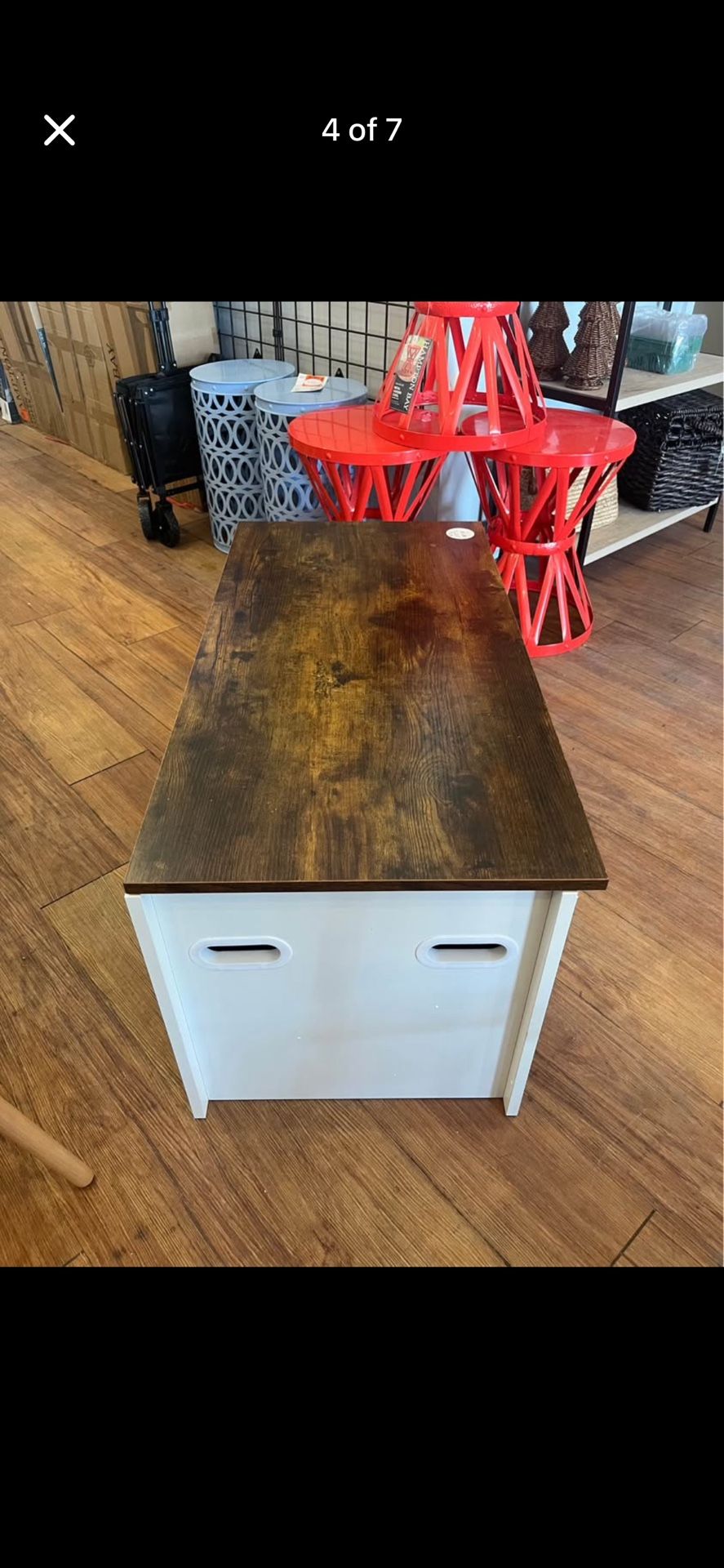 Entry Bench with Storage White with Natural Wood Top Brand New Located at Treasures Depot Brookfield 9207 Broadway Ave Brookfield Illinois SC