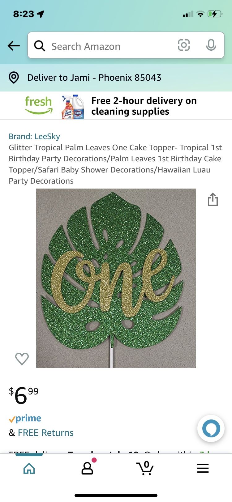 Glitter Tropical Palm Leaves One Cake Topper- Tropical 1st Birthday Party Decorations/Palm Leaves 1st Birthday Cake Topper/Safari Baby Shower Decorations/Hawaiian Luau Party Decorations