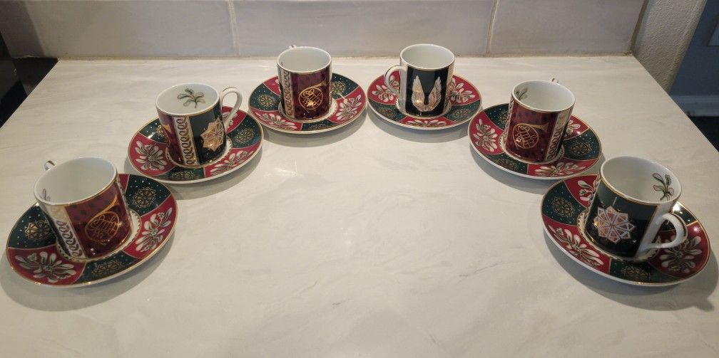 Set of 6 Neiman Marcus Demitasse Christmas Holiday espresso/tea cup and saucer set. $30