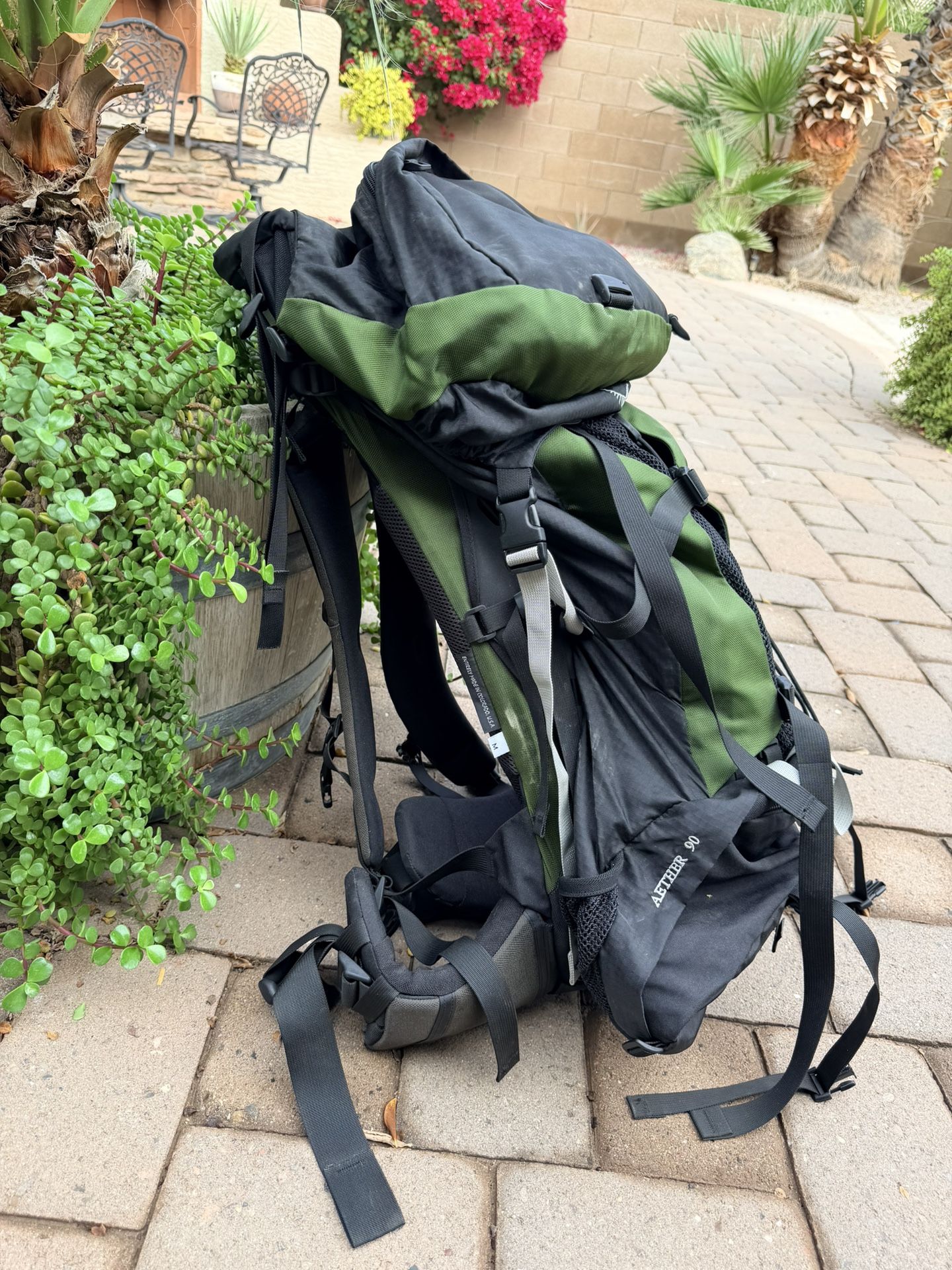 Vintage Osprey Aether 90 Hiking Backpack Frame Black /Green Bag. Only used 3x in excellent condition. All zippers, chords, buckles work like new. Over $400 new
