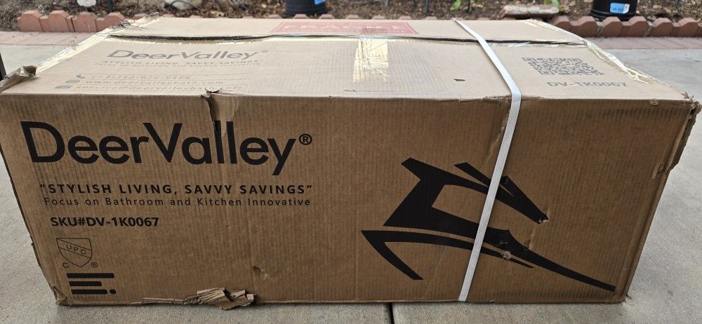 New Model: Deer Valley DV-1K0067 Overall Product Weight: 99 lb. Basin: 31.30" L x 17.24" W x 9.13" D Overall: 32.87" L x 20.00" W x 10.00" H Minimum Cabinet Size: 35.24" Drain Size (Diameter): 3.54"