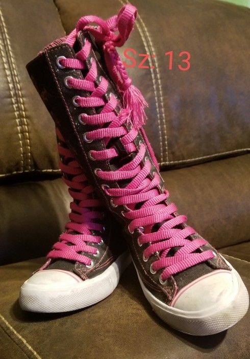 Disney discontinued "Shake it up" canvas lace up sneaker boots. Pink and purple heart design.