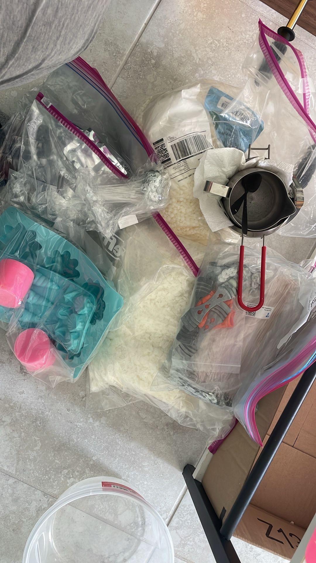 2 bags of 5lb soy wax, wicks, & color rocks
