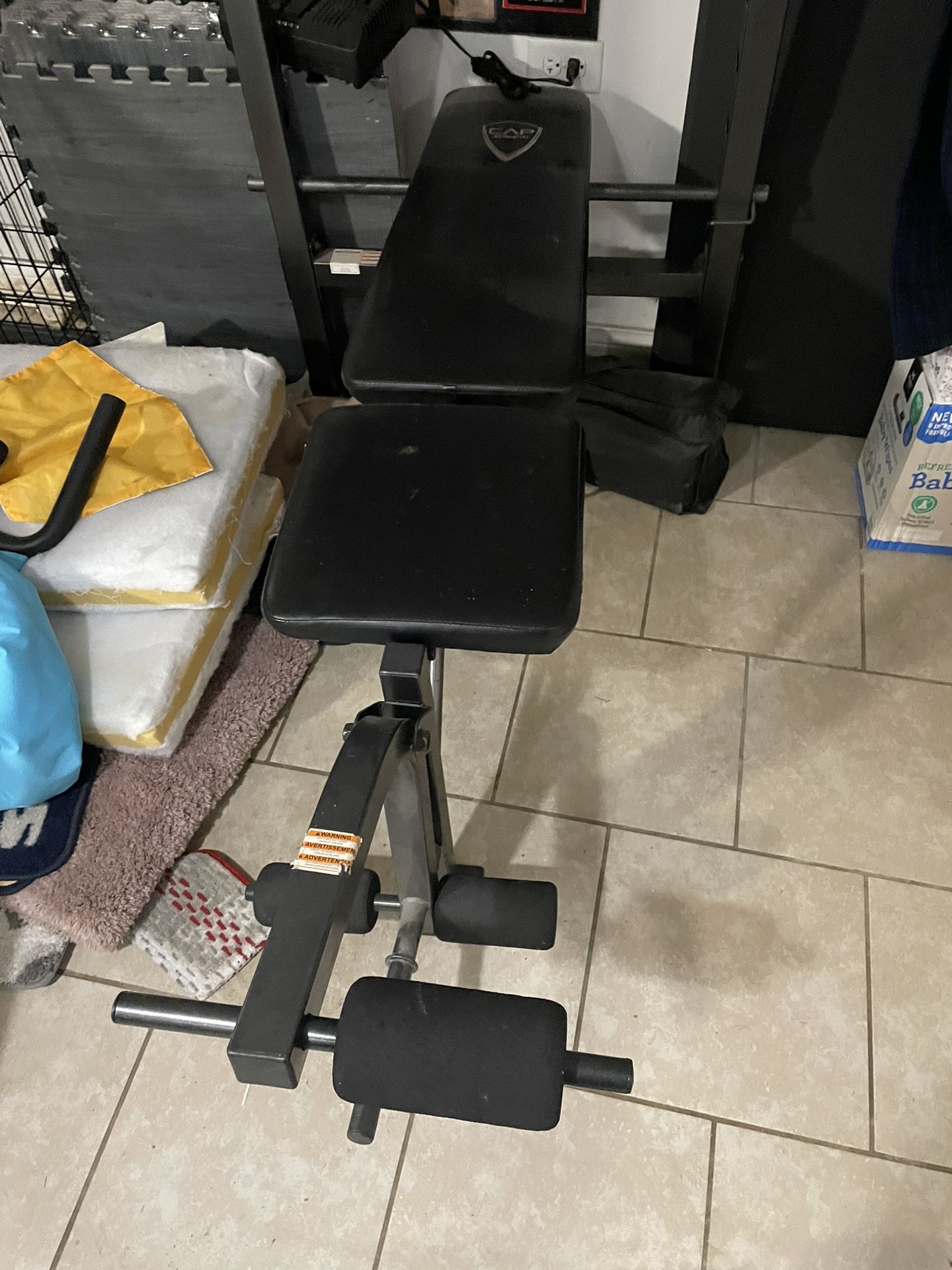 Weight lifting bench with 4-20lbs plastic weights and 2-10lbs $200 obo must pick up