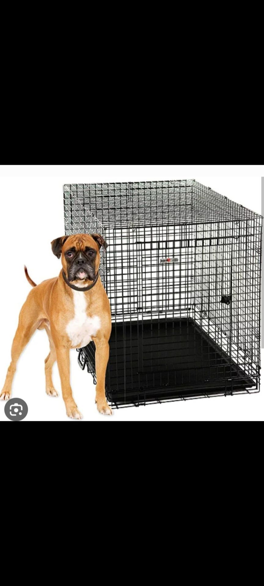 48” foldable dog crate with double doors and easy clean out bottom tray Easy setup and storage Brand new in box