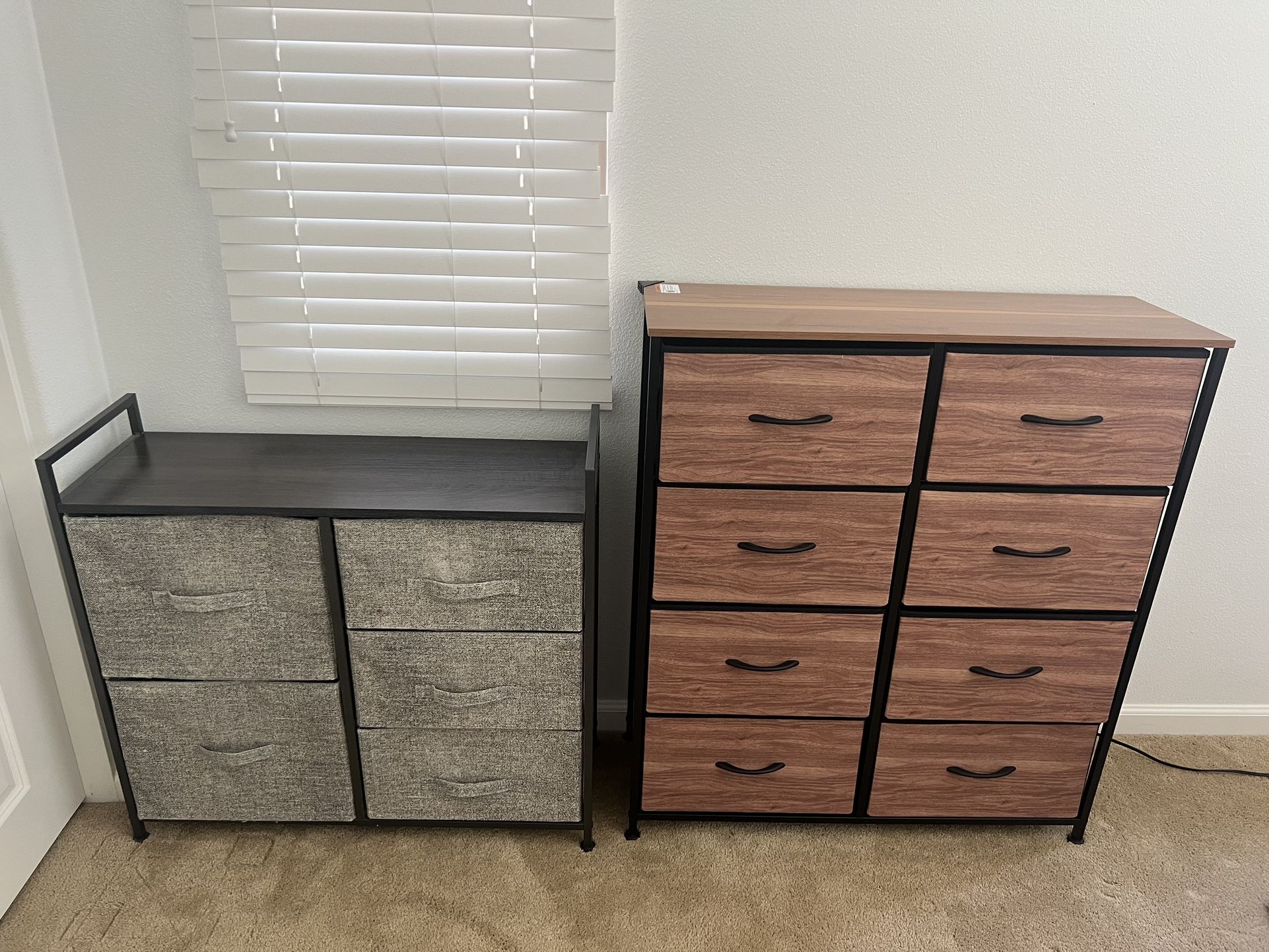 8Drawer Dresser - Fabric Storage Tower, Organizer Unit for Bedroom, Living Room, Hallway, Closet - Sturdy Steel Frame, Wooden Top & Easy Pull Fabric Bins . The smaller drawer dresser on the left is included as a bonus.
