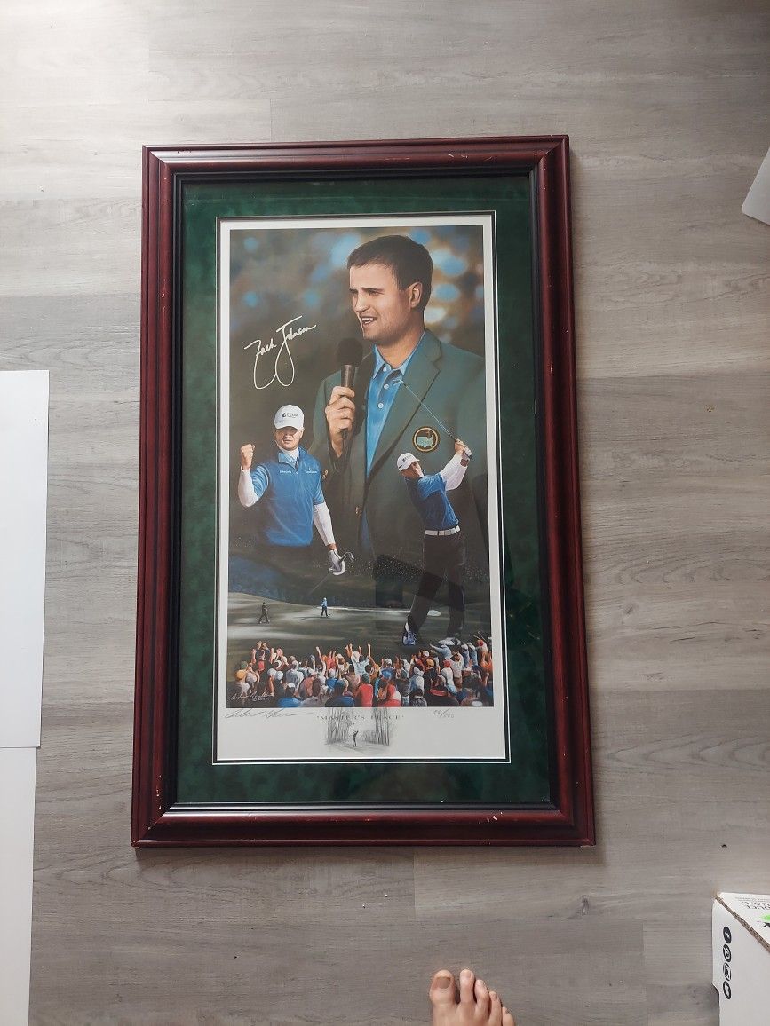 Large auto double mattemdprint measures 41x26 limited edition /300 signed by artist as well zach johnson masters auto framed print