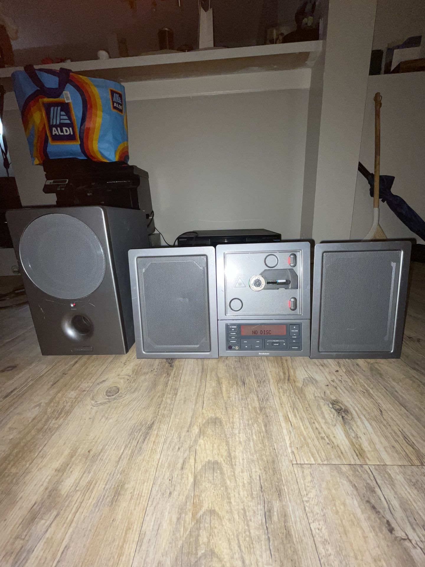 Brookstone Wafer-Thin CD System MP3 Player Flat Panel Speakers Subwoofer