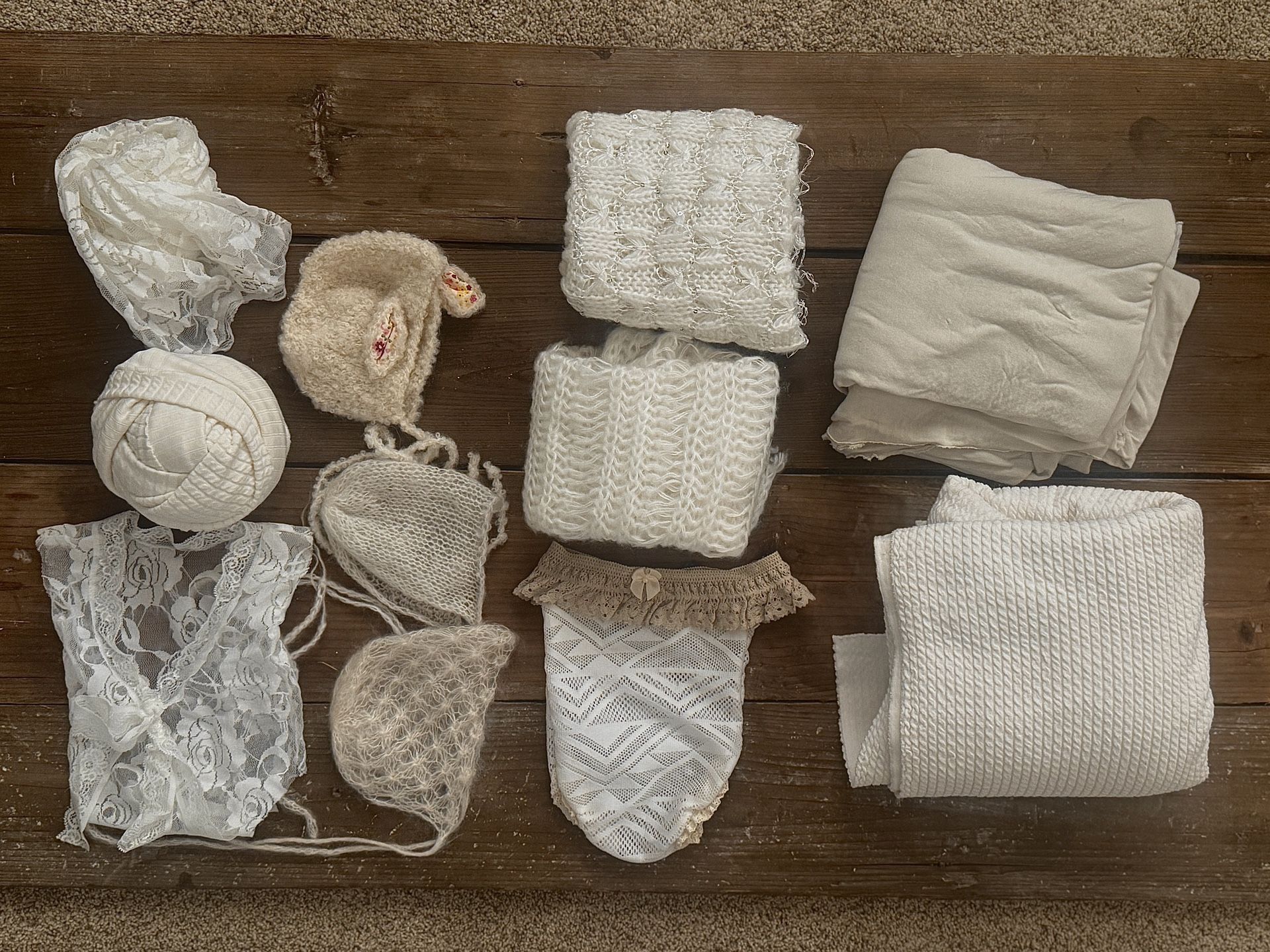 2 beanbag backdrops 2 knit layers 2 wraps 3 Beanies 2 outfits