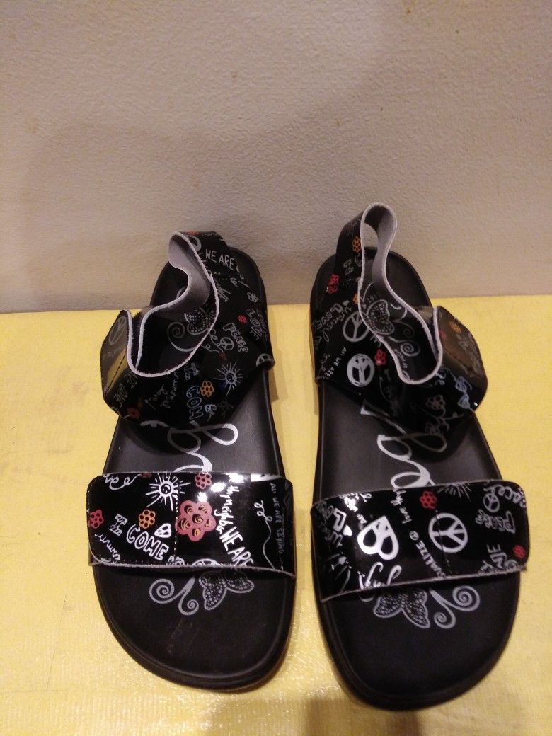 Black leather sandle euth Velcro to and bottom by. Alegia heritage by. PGLite size 7.5