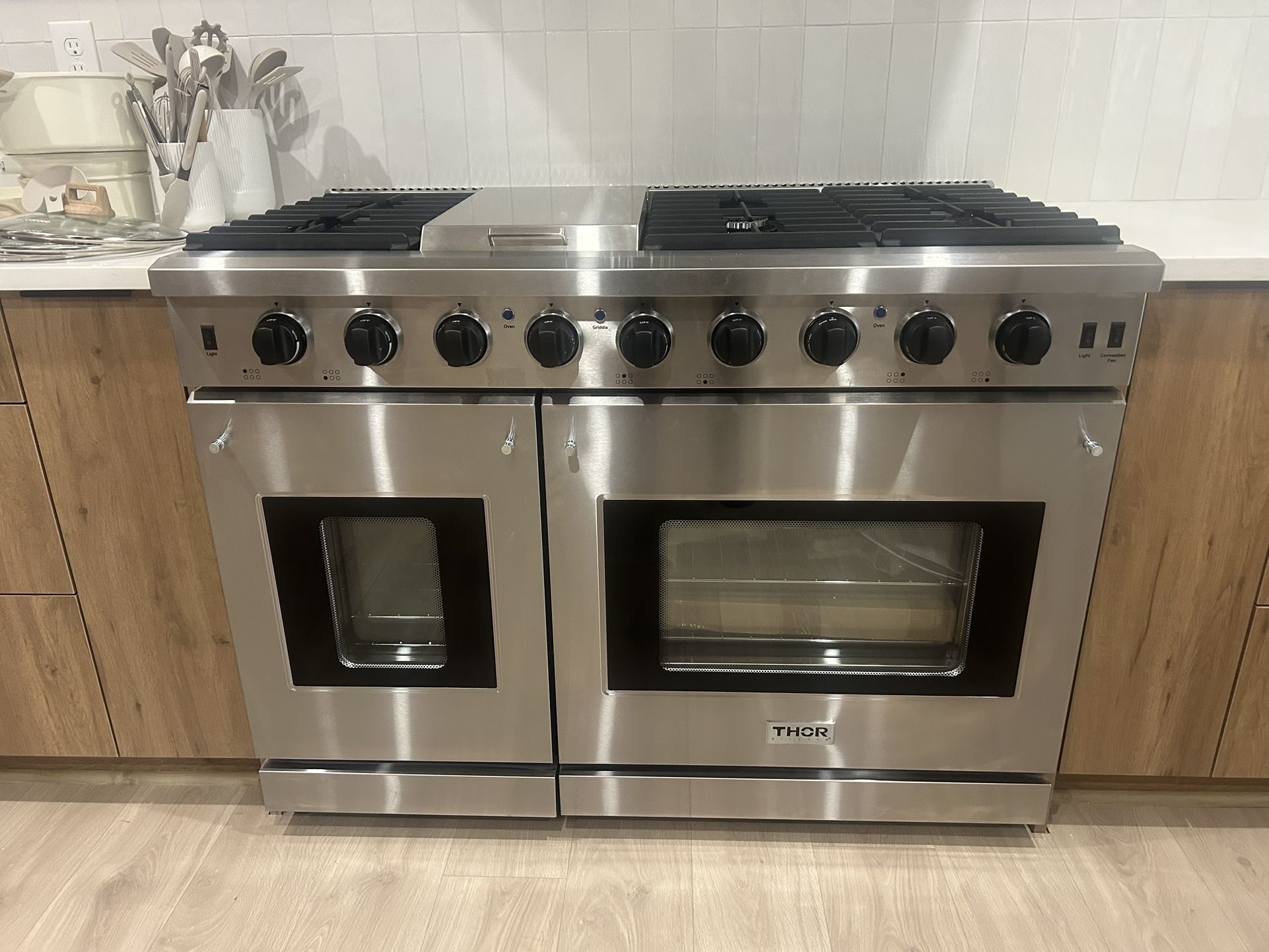 Brand new - unboxed Thor gas stove and dual oven. Purchased at regular price ($7149) for a remodel that switched to electric. Details and dimensions listed in photos. Selling for $3500.