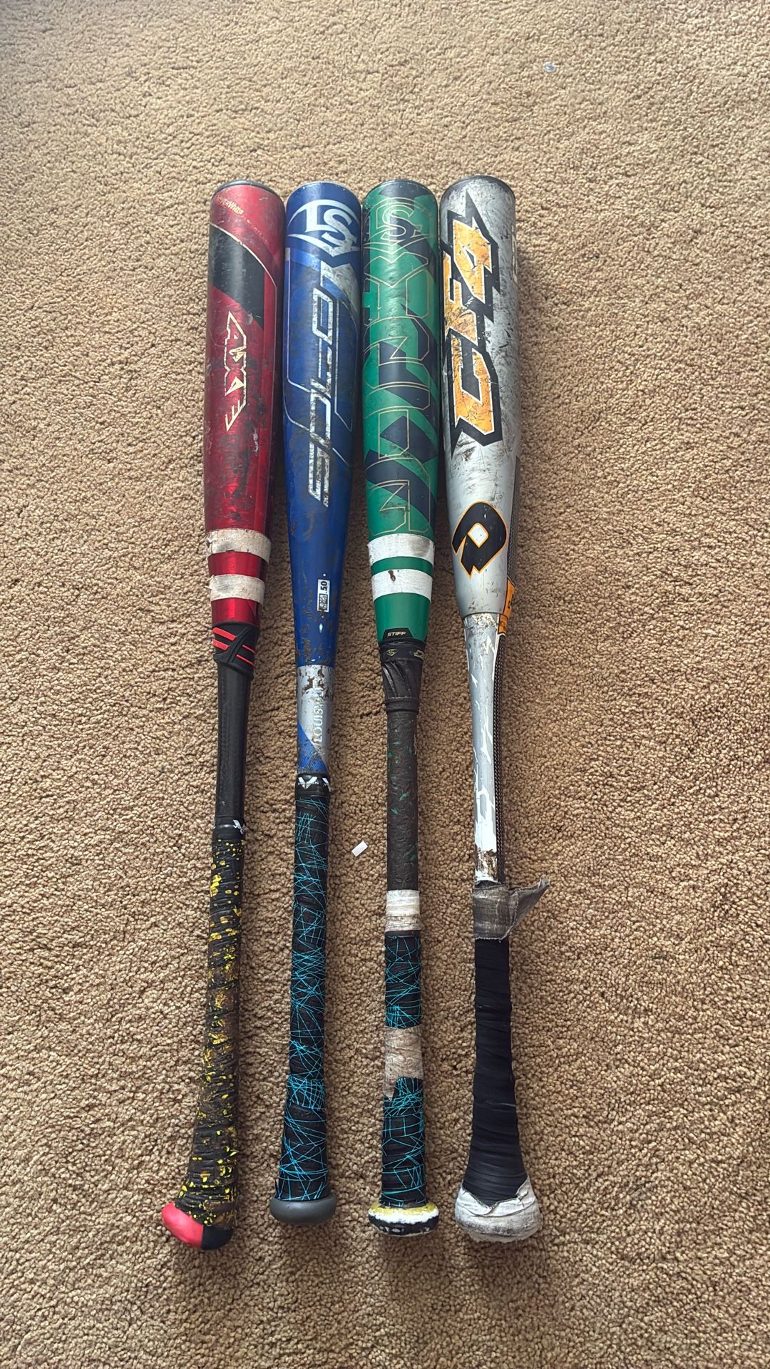 2022 AXE Avenge Pro Hybrid (-3) 33 in BBCOR $65. Grip condition is decent. 2020 Louisville Slugger Solo 6 (-3) 32 in BBCOR $45. New grip. 2023 Louisville Slugger Green Meta (-3) 32 in BBCOR $25. Grip condition is ok 2011 DeMarini CF4 (-3) 32 in BESR COMPOSITE $100. Good grip condition