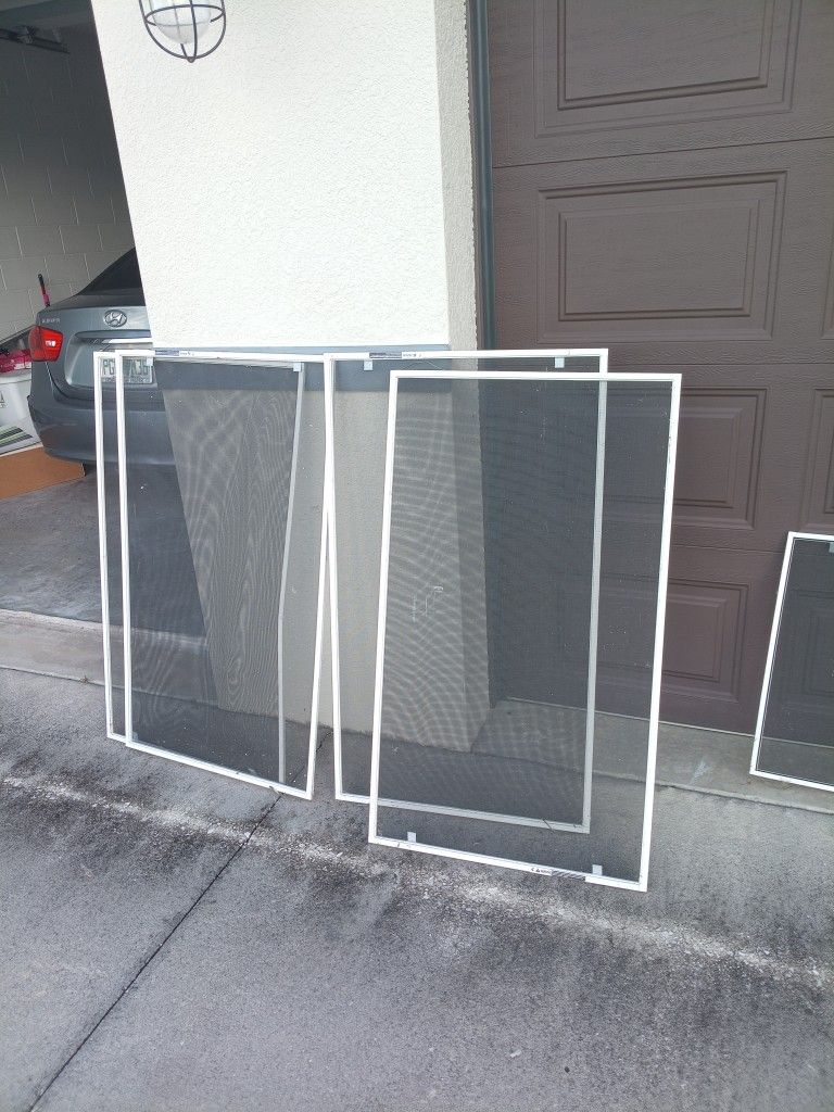 Screens for windows . 4 large (44" by 25") and 4 small ( 25" by 24") . In great shape, just one of the large ones has a dent on one side but can easily be re shaped back into place. Paid over $250 for them . Asking $100