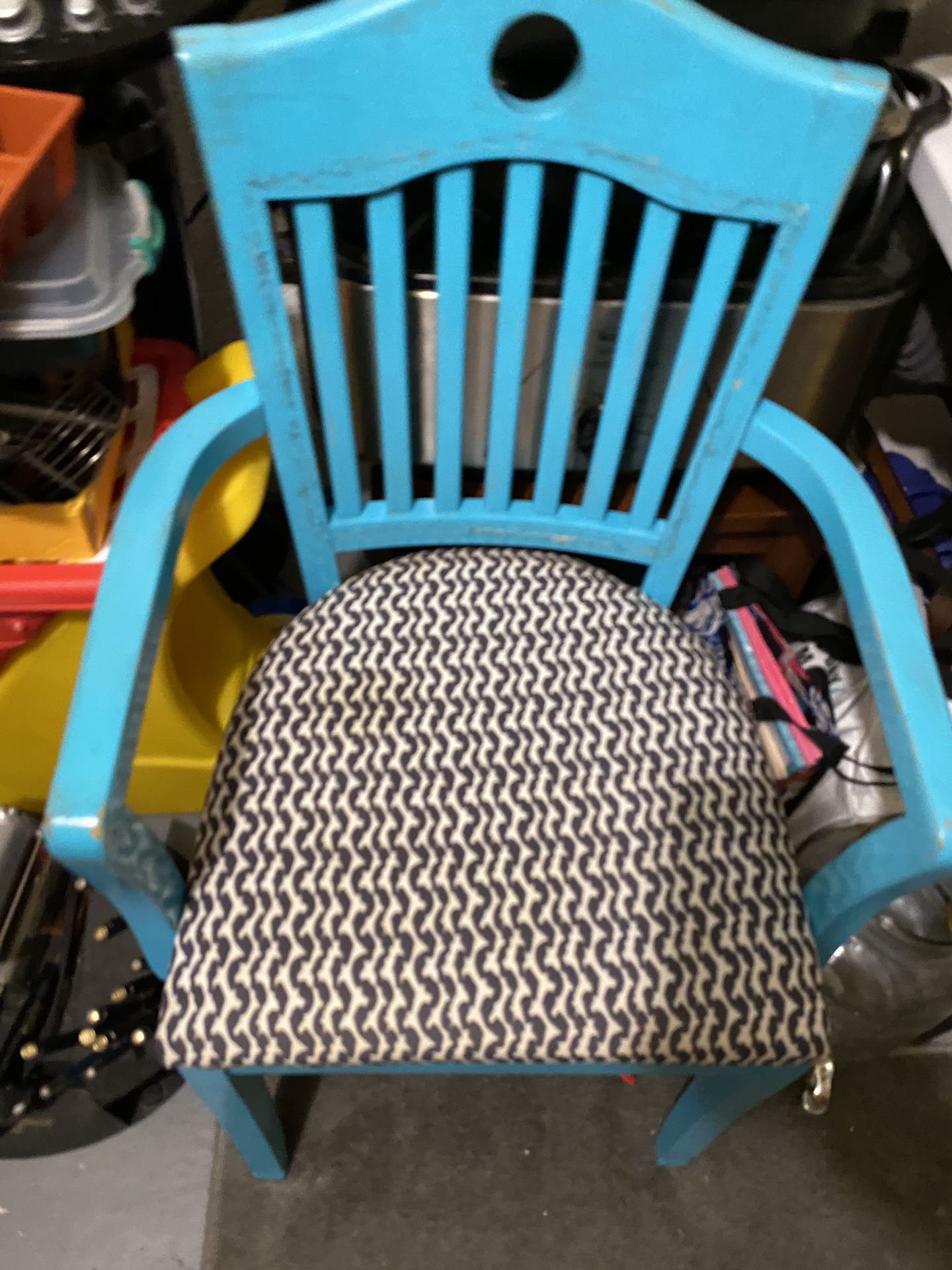 Wood chair Painted blue Black and white seat