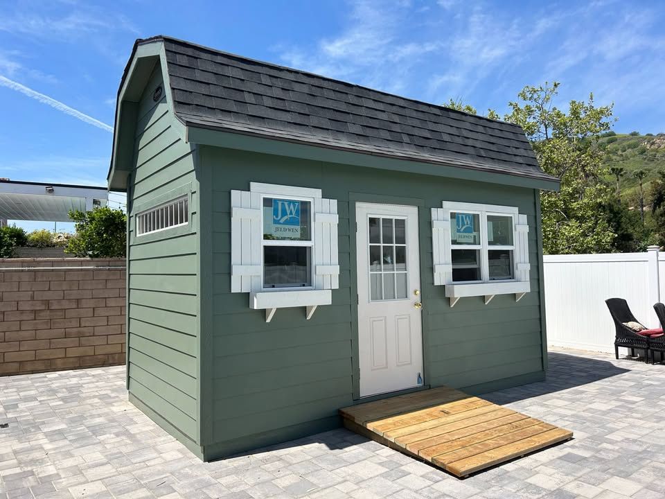 8x16 Texan She-Shed. Residential door. Tall walls. Loft. - Built to order, personalized for you (example shown) - 10-year+ warranty - On-site build or truck delivery - Flexible payment options; financing and rent-to-own available Visit 16441 Delone St, Santa Clarita, CA 91387 or call/text 6 6 1 2 1 5 8 2 8 3