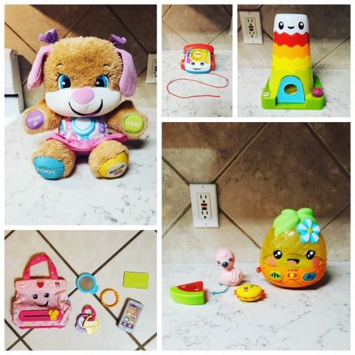Lot of used Fisher Price Laugh & Learn toys. All are in good condition, clean, & from a smoke-free home. They have been played with, so please refer to the photos on the condition. Bundle includes: - Laugh & Learn Smart Stages Sis - Laugh, Learn, Grow, & Play Pull Toy Little Chatter Telephone - Stack & Slide Magic Mountain - Laugh & Learn My Smart Purse - Paradise Pals Magical Lights & Tunes Pineapple All were tested & work great! If you have any questions, please feel free to shoot me a message. I'm happy to help as much as I can. If interested in other items, I will bundle at a lower price & combine shipping. Please don't hesitate to ask if you're interested in anything else; everything must go! :) Cross posted. Offers welcomed!! Thanks for reading!! ❤️ Tags; Fisher Price, Laugh & Learn, toys, baby, toddler, smart purse, Puppy, Sis, music, learning, educational READ: I do have more photos, can send via messenger. (: