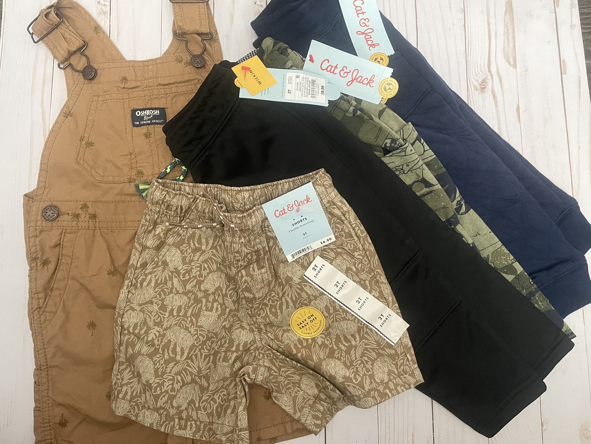 Size 2t $30 bundle New with tags 3 pants cat & jack 1 shorts cat & jack 1 overall Oshkosh Retails $51.99 +tax= about $57 Pick up only No trades