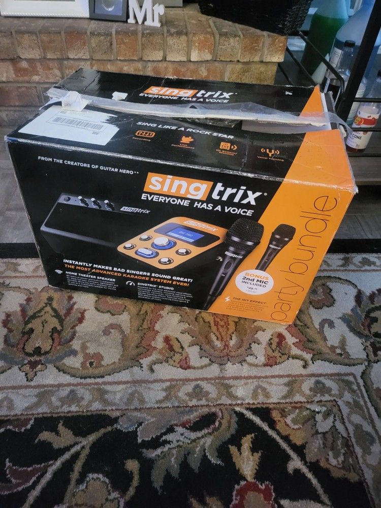ULTIMATE FAMILY PARTY EXPERIENCE - MAKES BAD SINGERS SOUND GOOD & GOOD SINGERS SOUND AMAZING - from creators of Guitar Hero, featured on Shark Tank, Ellen, The Kardashians & more. Singtrix will be your go to device for home entertainment. MOST ADVANCED KARAOKE – designed to sound like a million-dollar recording studio & a live concert event in your living room. 375 plus effects, skill levels, natural pitch-correction, hard-tune (Auto-Tune), harmonies, reverb, delay, extreme effects & more. 4-PART HARMONIES - CHOIR OF VOICES - AT THE TOUCH OF A BUTTON – built-in HIT button & effects controller instantly transforms your voice into a 4-Part Harmony making you sound larger than life. It’s like having backup singers at the touch of a button. QUALITY - POWER - SIMPLE PLUG & PLAY – 40-Watt Stereo PA w/ built-in subwoofer offers portable immersive sound. Fully adjustable Pro Mic Stand with built-in boom-arm. Singtrix Microphone perfectly weighted & balanced w/ 10-foot Mic Cable. Plug in and start singing in seconds. Weighted and balanced for professional quality audio. Tap the built-in “hit button to add real-time effects and Voice enhancements. Works with Singtrix karaoke Stadium Edition and family bundle.