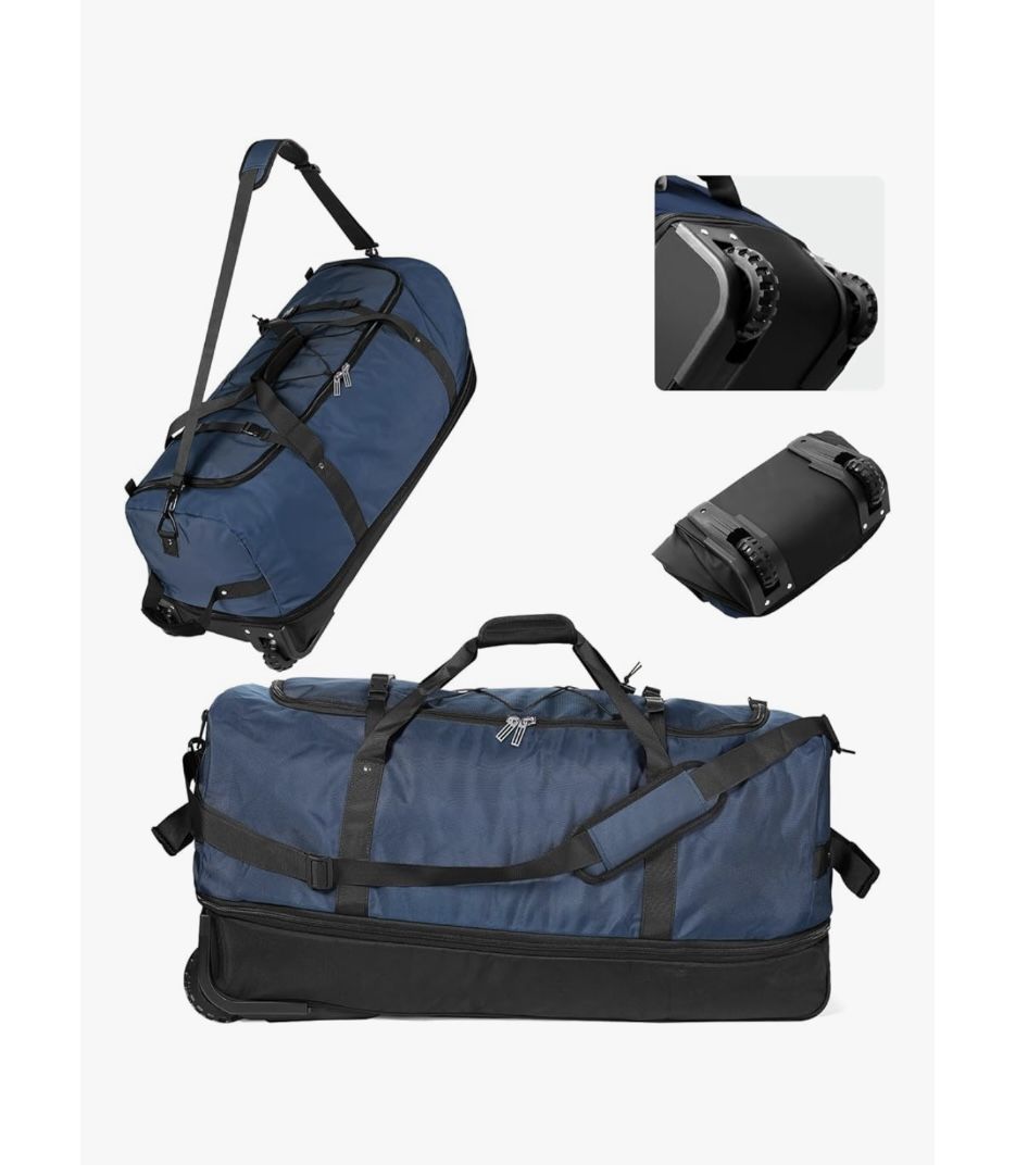 CONTAIL 32"110L Expandable 140L Rolling Duffle Bag with 2 Inline Wheels,Convertible Weekend Travel Bag with Bungee-Cord System (Upgraded Oxford, Navy-1)
