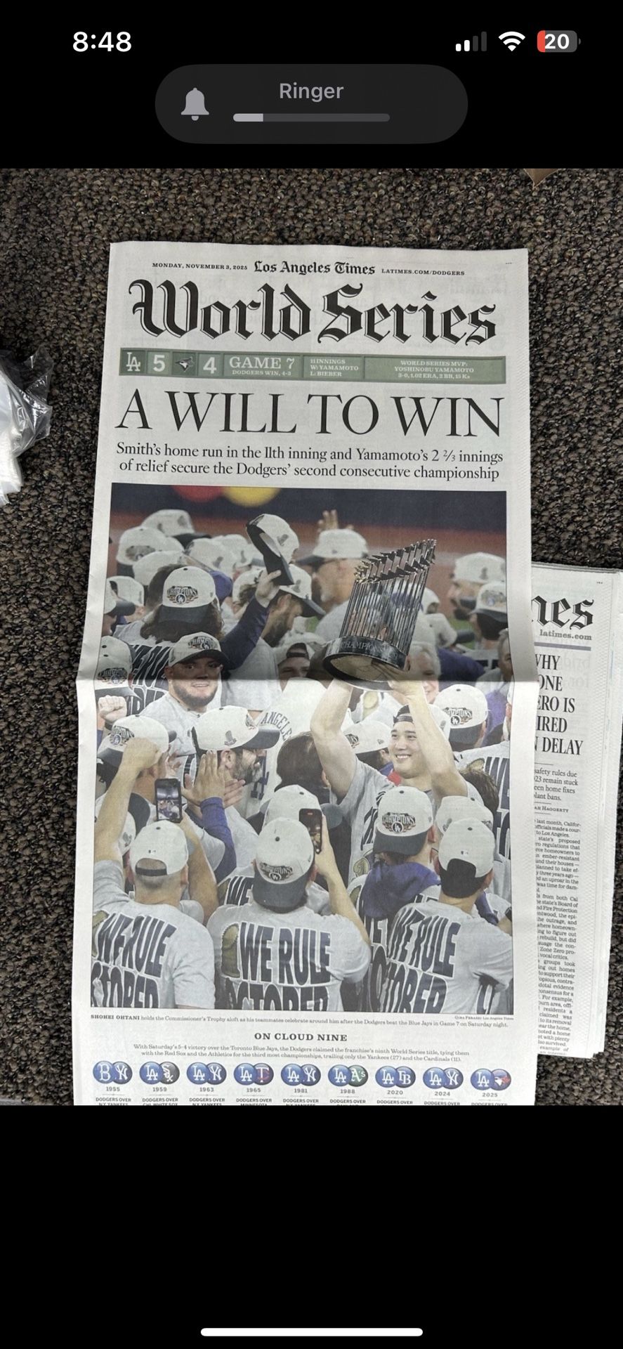 La Times Dodgers 2025 World Series Champs Game 7
