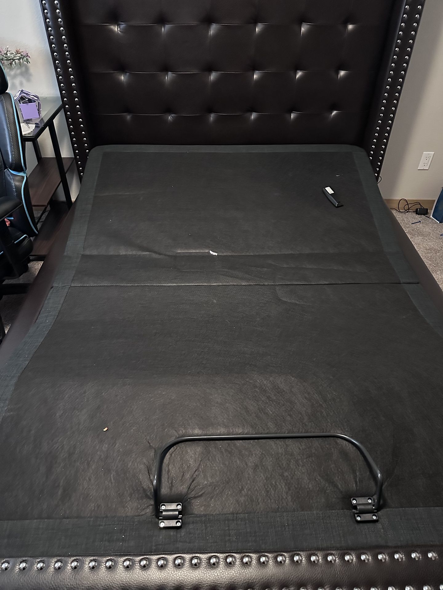 Queen size adjustable bed frame with remote like new, no pets and smoke free, also have usb outlets on both sides.