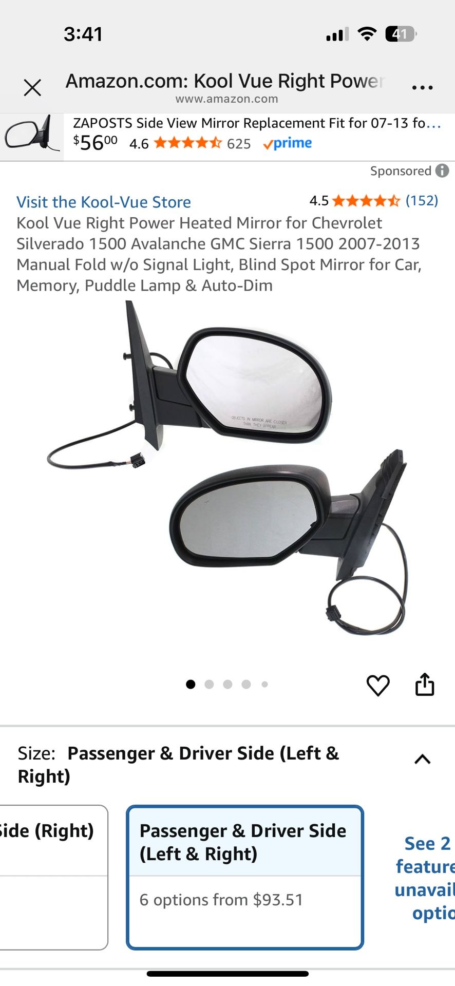 Right Power Heated Mirror for Chevrolet Silverado 1500 Avalanche GMC Sierra 1-2013 Manual Fold w/o Signal Light, Blind Spot Mirror for Car, Me