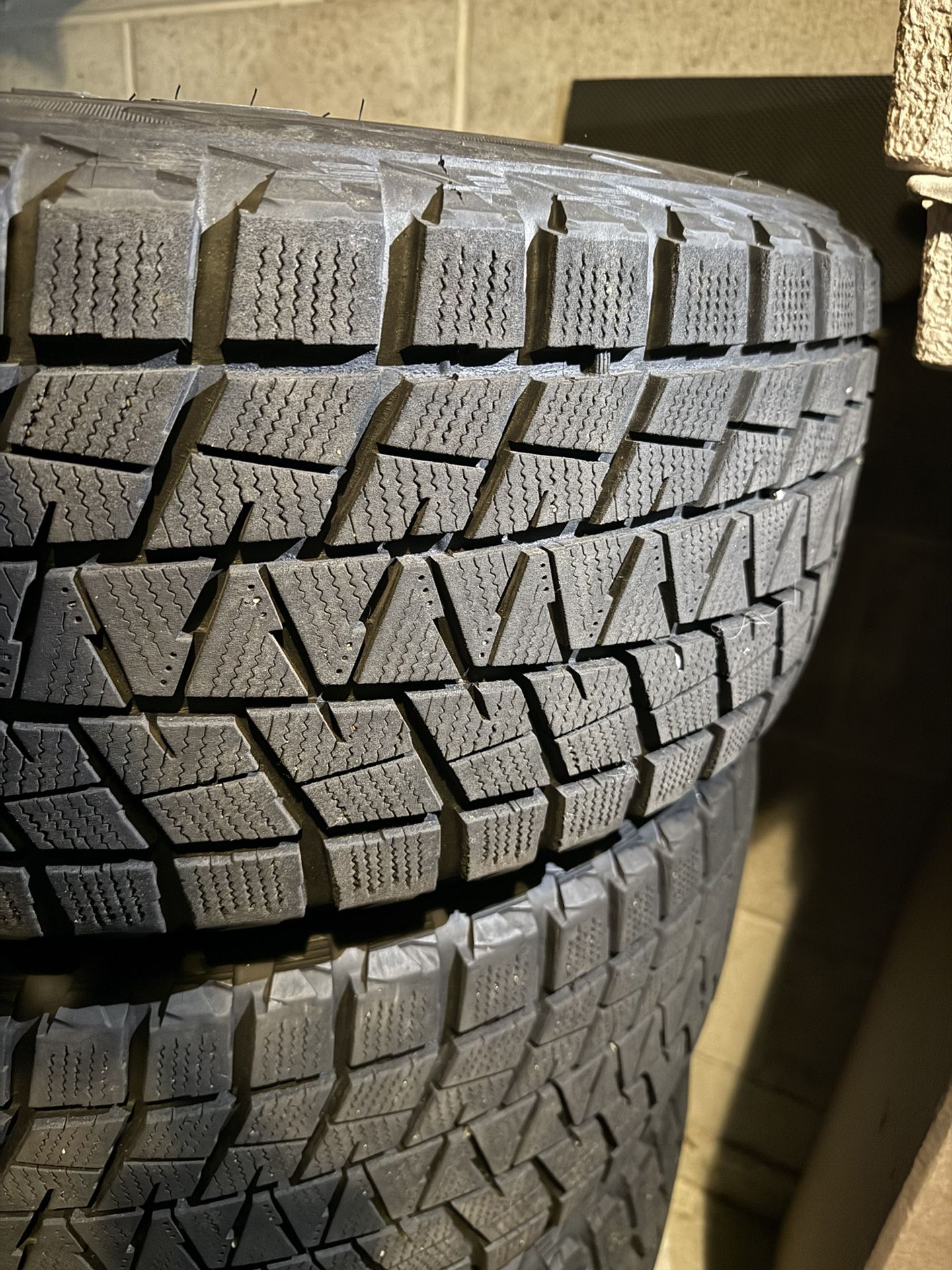4 Used tires in great condition. Bought wrong size and need the garage space. I have used this model of tire on two cars and it is confidence inspiring in icy and snowy conditions. Tire model details: Blizzak DMV1UZ 255/60R17 106R