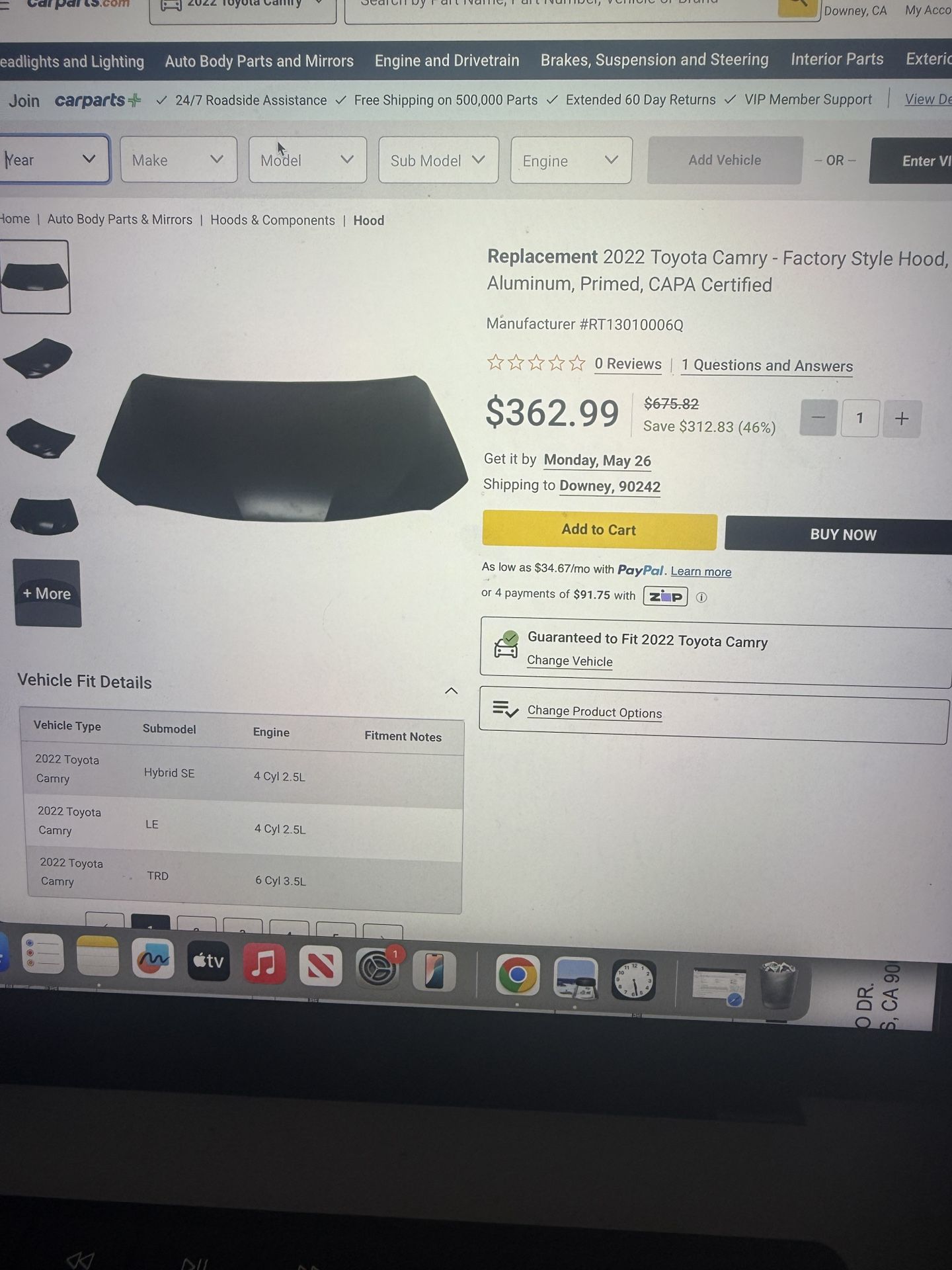 New Toyota Camry Hood in box that’s why I didnt post actual pictures. Fits anyone from 18-24 model years