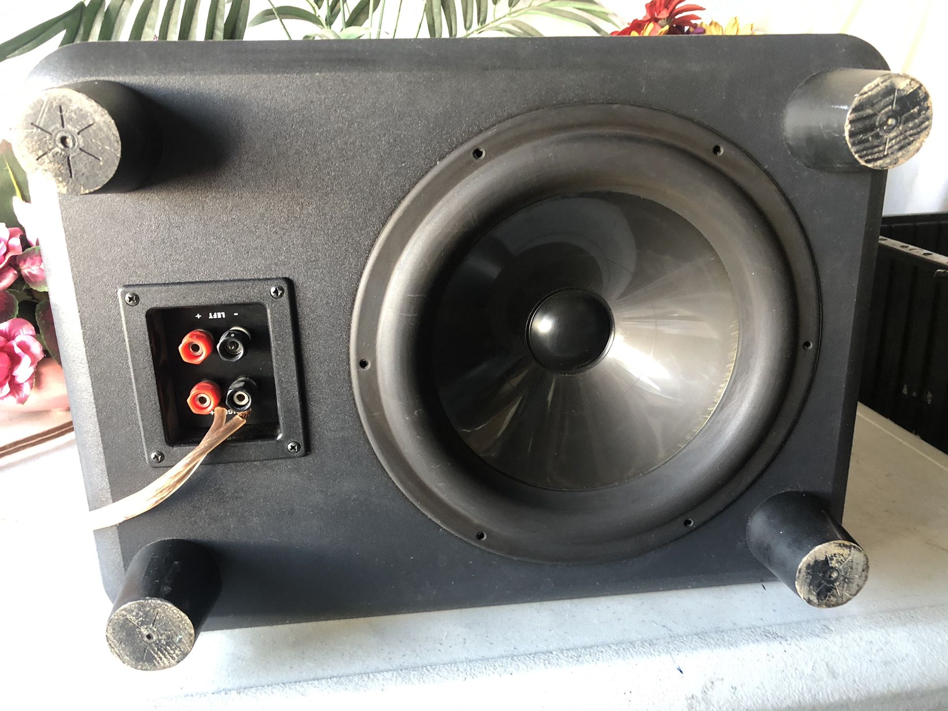 Polk Passive Subwoofer W Two 7" Speakers and a Bass Radiator of 10" w L & R Speaker Hookups & One Long Thick Superb Quality Wire 18” D x 13” H x 13” W 75 You are more than welcome to test the item before you pay us.