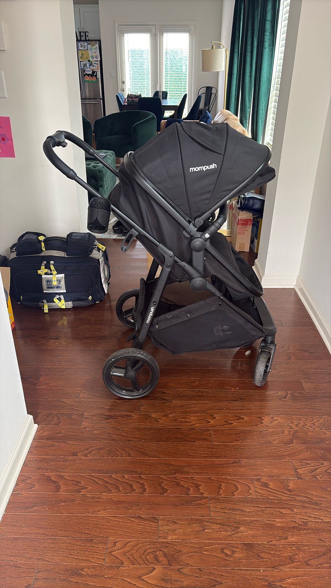 Can use for newborn-toddlers. Comes with rain cover. 5 point harness Seat reclines Zip on cover for child during colder months