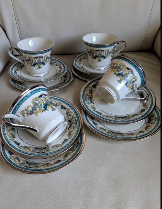 Lenox Fair Lady teacups, saucers, bread and butter plates, set of 12 items. Elegant holiday table setting set