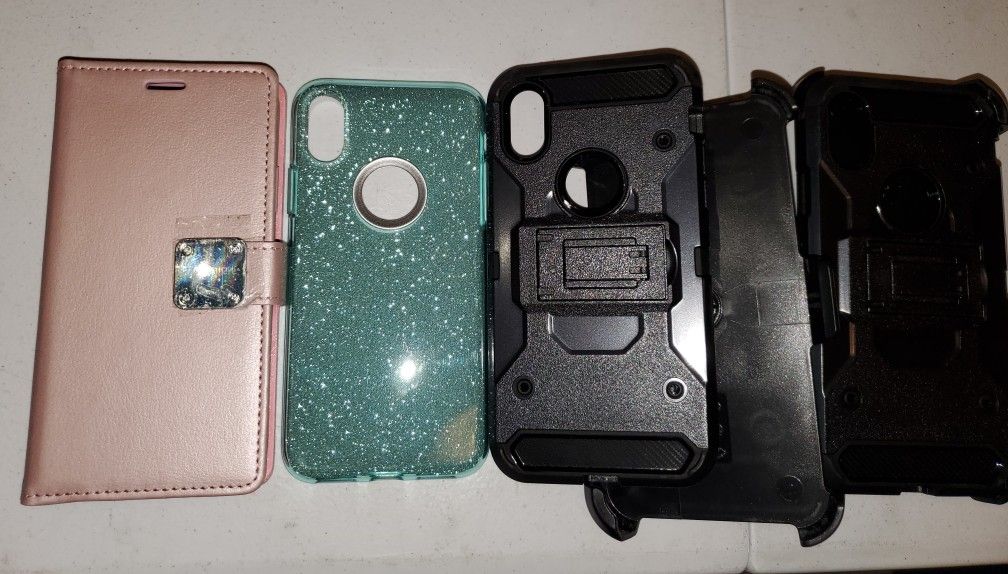 •New cases for: Iphone X/XS •$12 dlls each one Except: •The clear one/blue/glitter: $10dlls Tip: you can use de cases without the belt clip