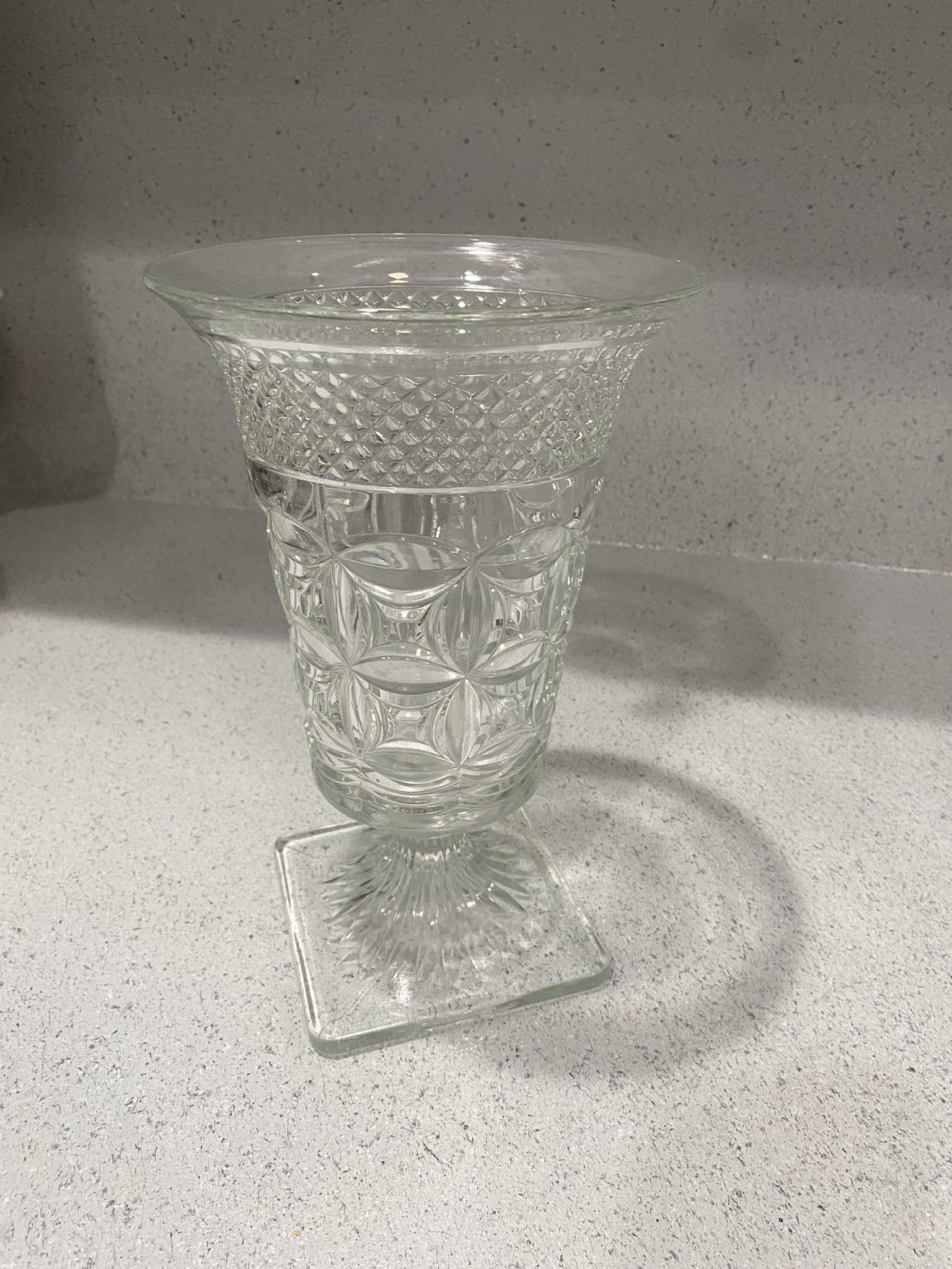 Vintage Glass Pedestal Vase. Absolutely gorgeous! 10 inches in height and 6 1/2 inches in width.
