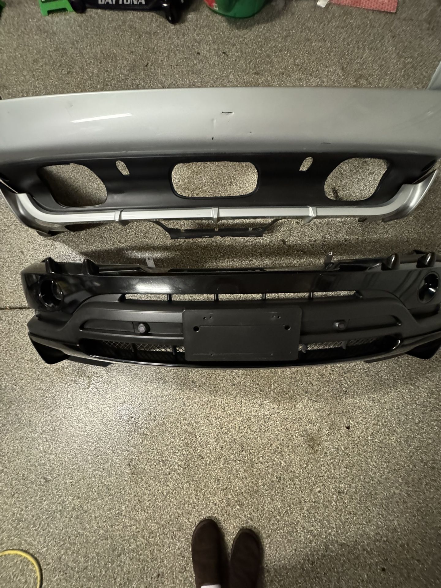 Front bumper is in very good quality with nice Black paint condition, all parking sensors, working headlight washers. Rear Bumper is in fair condition, does have some scratches I. Titanium silver paint, no parking sensors s and right side has a little side trim missing as shown in the picture. $500 each or $900 for both, will entertain trades