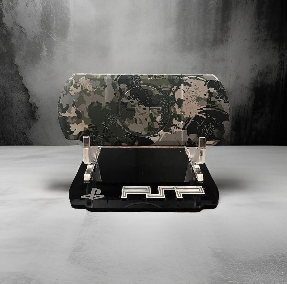 This console was released to commemorate the release of Metal Gear Solid: Peace-walker for the PSP, witch where specially hydro dipped, a technique utilized by military organizations to print their camouflage on equipment so it all looks different. Several models of this PSP had skulls hidden within the design, this is one of those models. - Charger included - Battlefront: Rouge Squadron included - Carrying case included -Preloaded (DM for Games) -Region Free