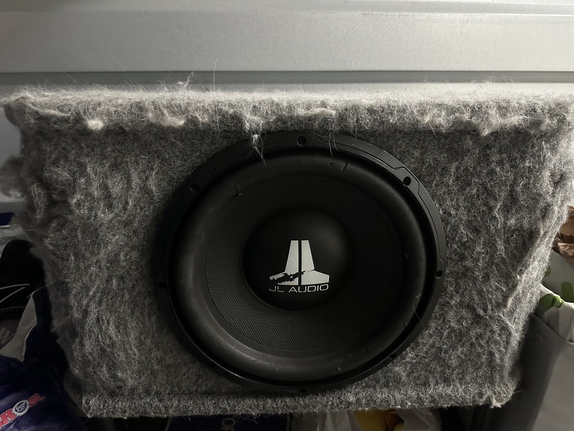 JL Audio (PWM110-JXWXv2) - Single 10WXv2 PowerWedge MAX with JX250/1 Amplifier, Sealed, 4 Ohm. Wear and tear visible on gray carpeting. MUST PICK UP IN WHITTIER, CASH ONLY.